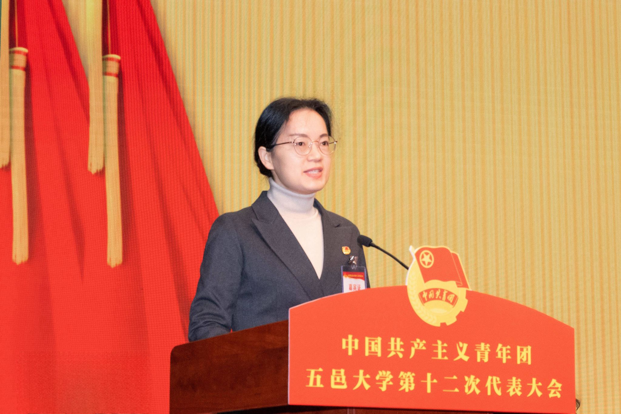第一次全體會議上,學校團委書記許炳佳代表共青團五邑大學第十一屆委員會作題為《高舉旗幟跟黨走,挺膺擔當建新功,團結引領青年學子為建設僑校特色鮮明的高水平應用型大學貢獻青春力量》的工作報告,全面回顧了第十一次團代會以來學校共青團工作取得的成績,客觀分析了當前工作面臨的新形勢、新機遇和新挑戰,明確了學校共青團未來五年的指導思想、奮斗目標和主要任務。