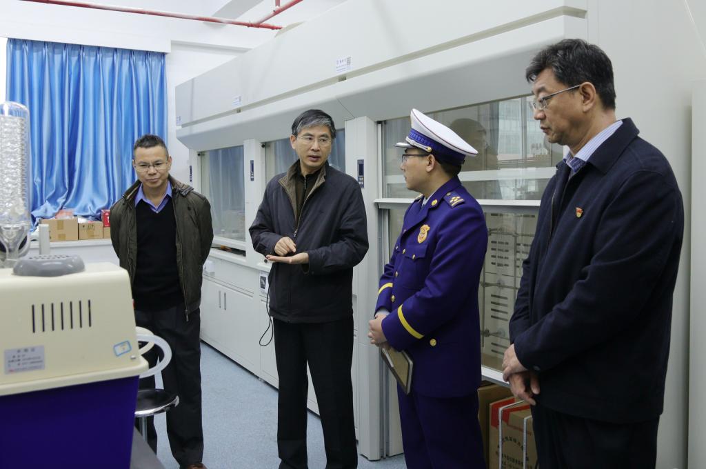 1月7日,市委常委利為民同志帶領市府辦、市教育局、安監局、公安消防局等相關負責人蒞校,督導實驗室安全工作,校黨委書記張焜、副校長李霆等陪同督查。