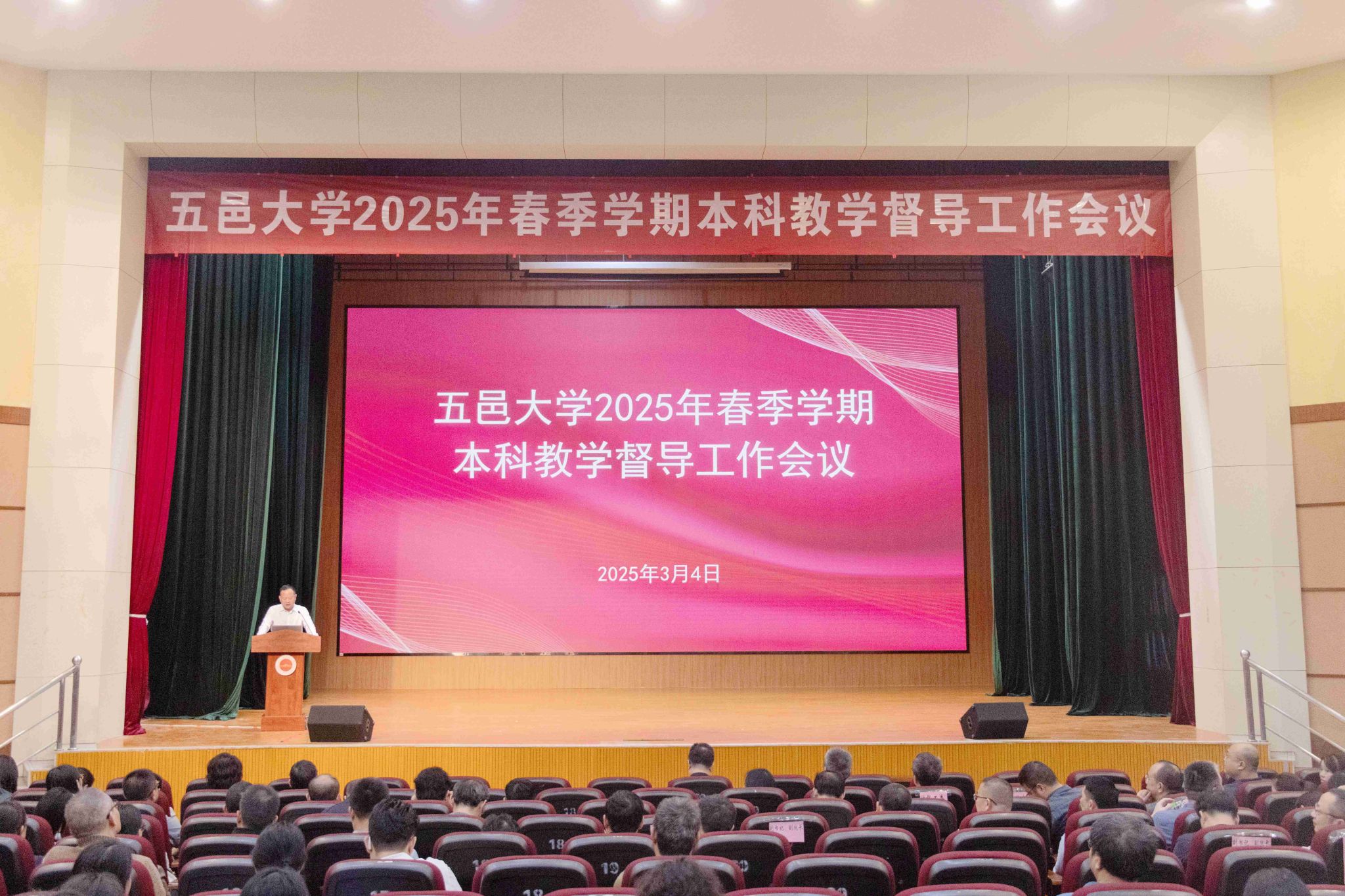 3月4日,五邑大學2025年春季學期本科教學督導工作會議在呂志和禮堂召開。校黨委書記欒天罡出席會議并講話。校黨委常委、副校長董超俊和校教學督導工作委員會全體成員、校院兩級督導團成員、各學院負責人及全體專任教師參加會議。會議由董超俊主持。