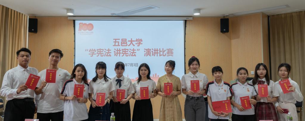為深入學(xué)習(xí)貫徹習(xí)近平法治思想,持續(xù)推進(jìn)憲法學(xué)習(xí)宣傳教育,7月3日,由黨委宣傳部主辦的“學(xué)憲法 講憲法”演講比賽在學(xué)生綜合服務(wù)中心314室舉行。本次比賽邀請(qǐng)了江門(mén)市司法局普法與依法治理科科長(zhǎng)孟慶雷、學(xué)校黨委宣傳部常務(wù)副部長(zhǎng)范佳鳳、馬克思主義學(xué)院《思想道德修養(yǎng)與法律基礎(chǔ)》教研室主任張淑妹以及政法學(xué)院教師徐丹丹等擔(dān)任評(píng)委。