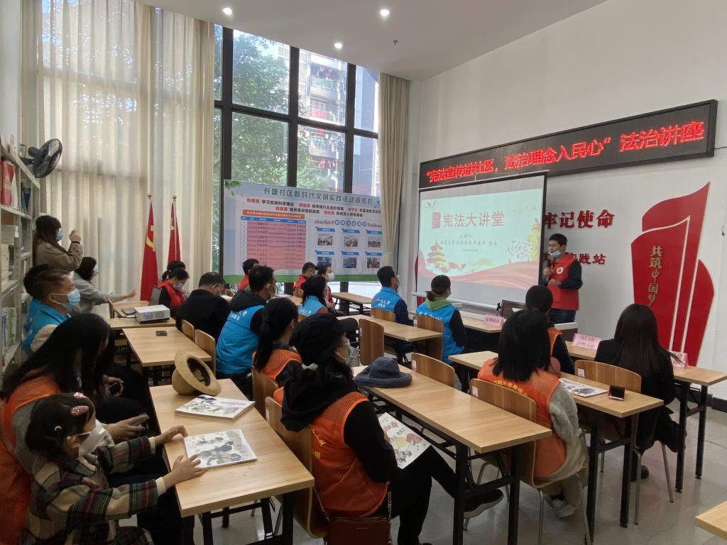 各學院(部)紛紛設立分會場組織師生通過網絡同步參與到“憲法晨讀”活動中,并積極開展系列宣傳教育活動。12月4日,智能制造學部黨委聯合蓬江區人民法院、廣東真利律師事務所組織開展“學黨史 感黨恩 我為群眾辦實事”之法律咨詢志愿服務,政法學院黨總支深入結對社區,開展“憲法宣傳進社區,法治理念入民心”法治講座,推動憲法精神深入人心。