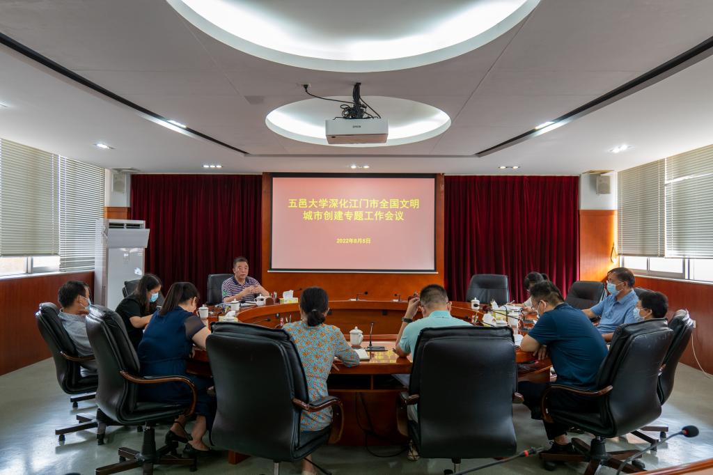 8月5日,五邑大學(xué)召開深化江門市全國(guó)文明城市創(chuàng)建專題工作會(huì)議,深入學(xué)習(xí)貫徹習(xí)近平總書記關(guān)于精神文明建設(shè)的重要論述,傳達(dá)江門市創(chuàng)建全國(guó)文明城市工作領(lǐng)導(dǎo)小組會(huì)議精神,部署學(xué)校鞏固和深化江門市全國(guó)文明城市創(chuàng)建工作。校黨委副書記李靄康主持會(huì)議并作講話,相關(guān)職能部門負(fù)責(zé)人參加了會(huì)議。