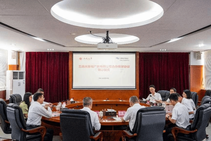 8月26日,五邑大學與廣東電網公司合作框架協議簽訂儀式在學校舉行。廣東電網公司副總經理饒毅一行蒞臨五邑大學出席簽約儀式,五邑大學校長張運華、副校長陳文華出席簽約儀式。