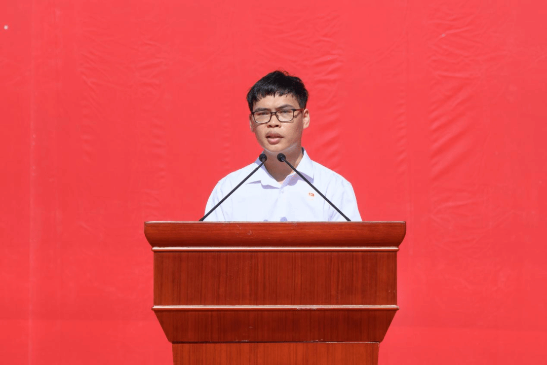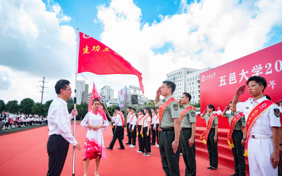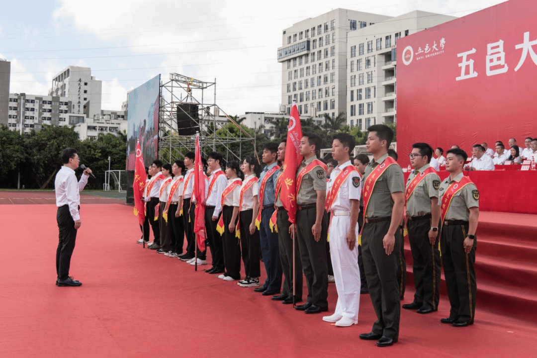 欒天罡為畢業生出征授旗。畢業生代表團莊嚴宣誓,聲音鏗鏘有力,透露出扎根基層的堅定信念:“到西部去、到基層去、到祖國最需要的地方去!參軍報國,無上光榮,揚帆再出發,奮進建新功!”