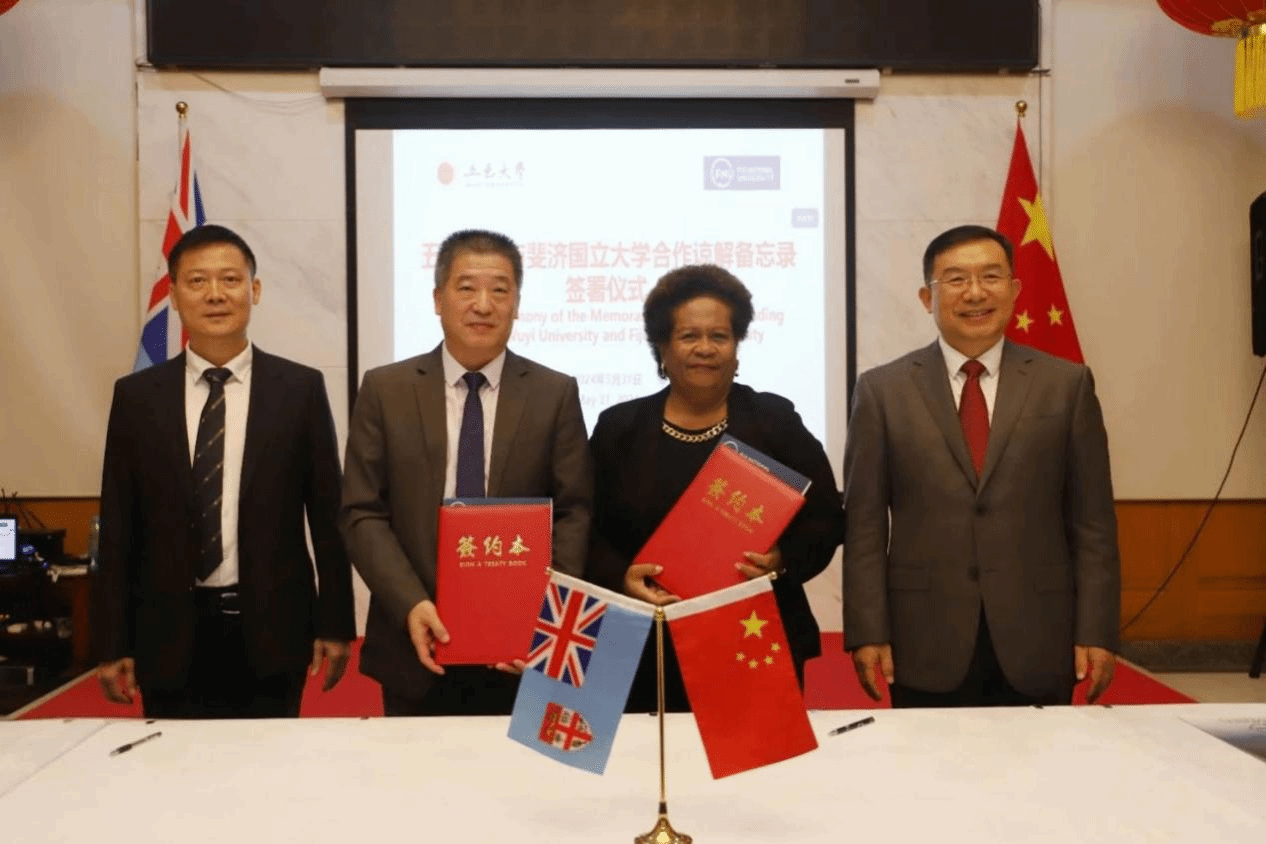 訪問期間,在中國駐斐濟使館舉行了五邑大學與斐濟國立大學合作諒解備忘錄簽署儀式。駐斐濟大使周劍出席簽署儀式。斐濟國立大學副校長娜波波芭芭和正在斐濟訪問的中國—太平洋島國防災減災合作中心專家組以及兩校代表等20余人參加儀式。在周劍大使與專家組組長、廣東省應急管理廳總工程師何勝莊共同見證下,兩校簽署了合作諒解備忘錄,為雙方開展交流合作做出了規劃。