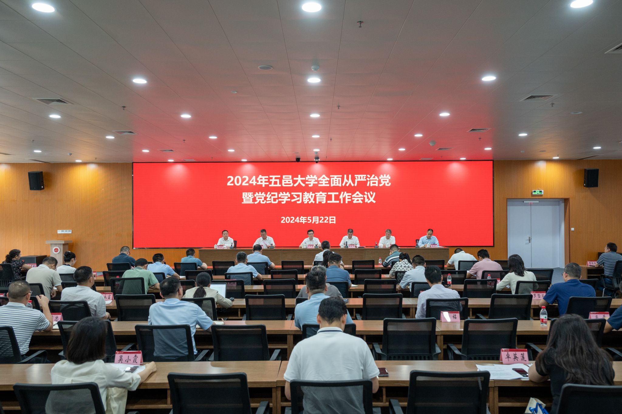 5月22日,學校召開2024年全面從嚴治黨暨黨紀學習教育工作會議,校黨委書記欒天罡深入總結2023年全面從嚴治黨工作并部署2024年重點工作,黨委副書記、校長張運華主持會議并傳達學習有關會議精神,黨委常委、紀委書記、省監委駐五邑大學監察專員莫健文通報2023年學校紀檢監察工作以及2024年工作任務。全體在校校領導,校黨委委員、紀委委員,各職能部門主要負責人,各學院黨政主要負責人、專職副書記參加會議。