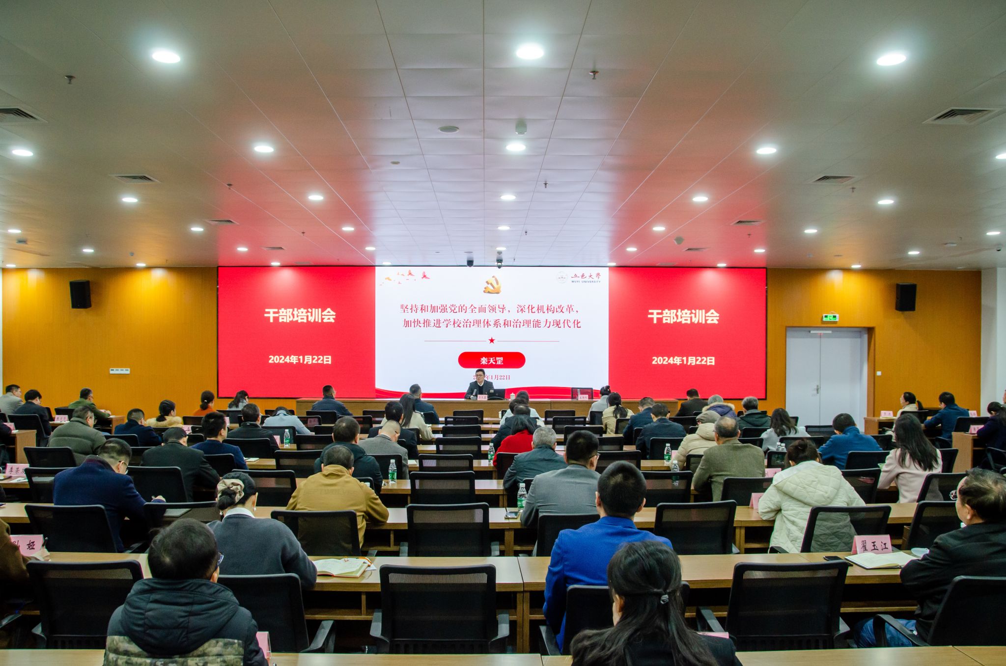 1月22日下午,學校召開2024年干部培訓會。校黨委書記欒天罡以“堅持和加強黨的全面領導,深化機構改革,加快推進學校治理體系和治理能力現代化”為題講授專題黨課。校黨委常委、副校長陳廷根,各二級學院黨政主要負責人和職能部門負責人等80余人參加了培訓。