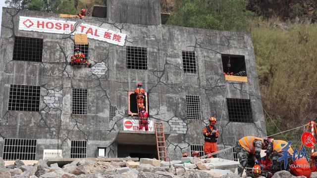 此次演練模擬的災情為太平洋某島國發生7.0級地震。地震造成住宅、醫院、超市、學校等建筑物損毀嚴重,約2萬人遇難,4000余棟建筑物倒塌。演練共設置了向上繩索救援、T形繩索救援、崖壁救援、深井救援、直升飛機救援等12個科目。