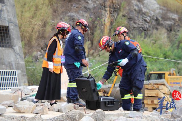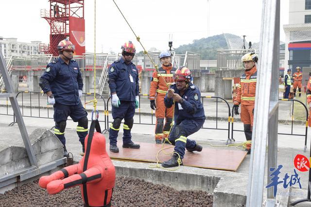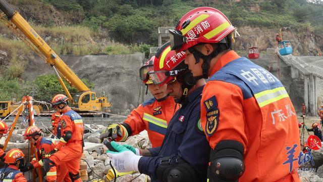 在泥石流埋壓救援中,有人員因地震引發的泥石流被埋壓。來自庫克群島、中國香港救援隊、國家危險化學品應急救援茂名石化隊和廣東梅州消防的救援隊員們,通過搜索確定被困人員位置后,搭建護橋,再使用繩索保護技術,將被困人員轉運至安全區域。