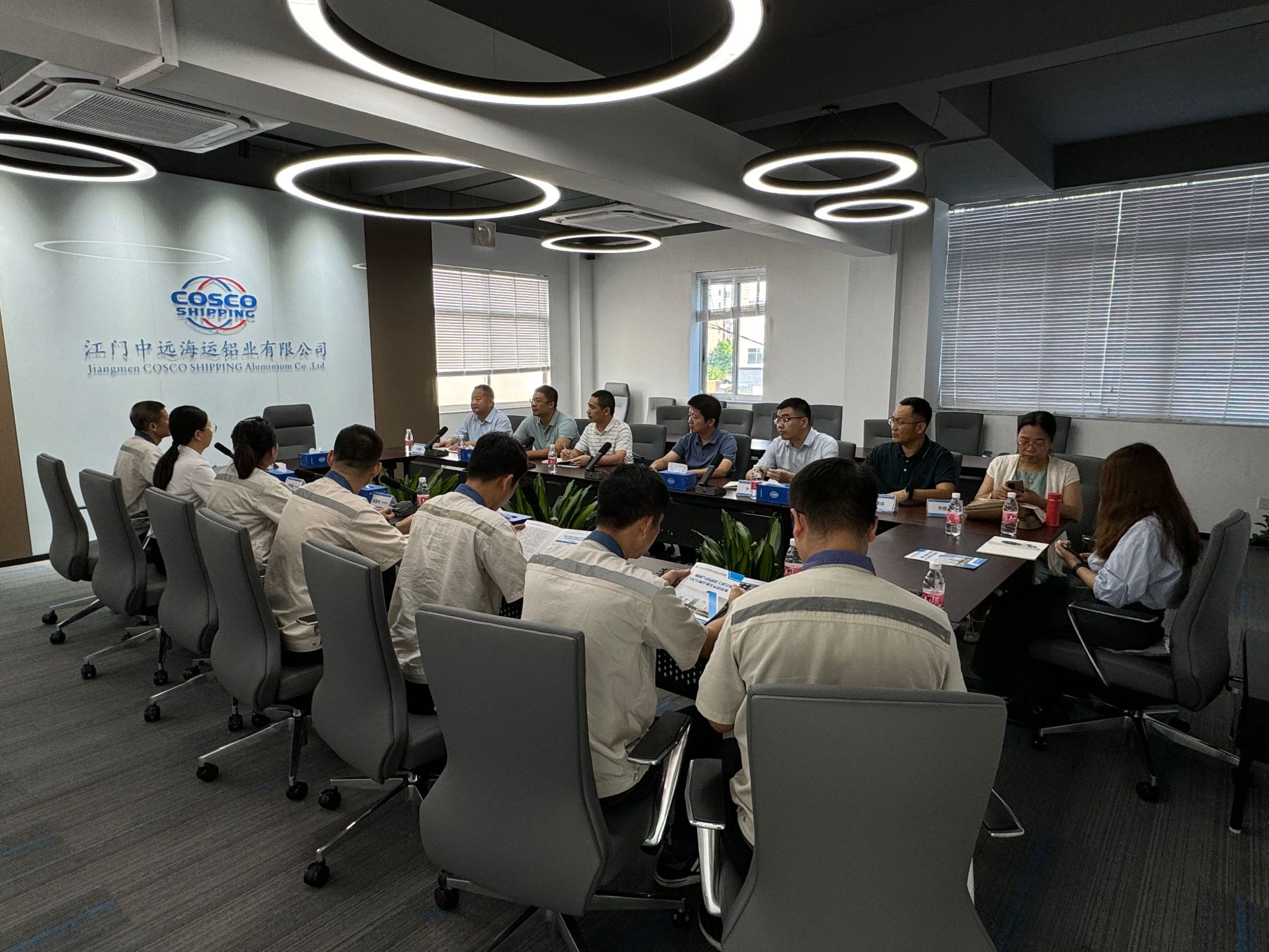 會上,江門中遠海運鋁業有限公司分享了企業在技術創新、產品研發、市場拓展、智能制造等方面的經驗和成果。雙方就共同關心的科研合作、人才培養、畢業生就業等問題進行了深入交流。學校一行參觀了生產車間,了解各個車間生產工序、各項目運行以及當前的自動化生產情況。