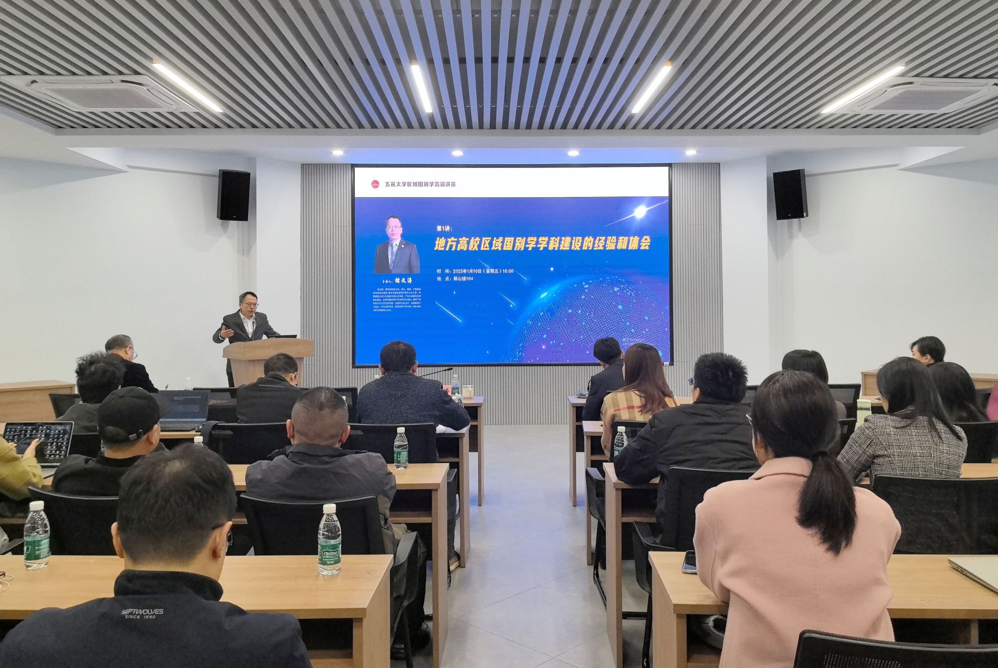 2025年1月10日,五邑大學首開區域國別學高端講座,肇慶學院副校長、區域國別研究中心主任胡文濤教授應邀作第一講。五邑大學黨委常委、副校長陳文華,相關職能部門負責人、各文科學院負責人和教師近50人聆聽了講座。