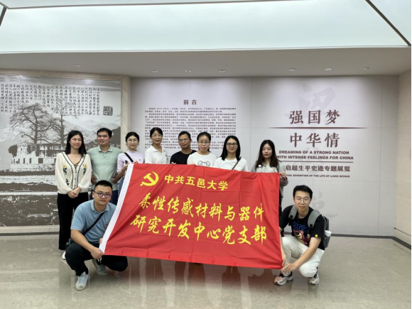 為慶祝中國(guó)共產(chǎn)黨建黨102年華誕,弘揚(yáng)愛國(guó)主義精神,2023年7月16日上午,柔性傳感材料與器件研究開發(fā)中心黨支部全體黨員走進(jìn)江門市新會(huì)區(qū)會(huì)城鎮(zhèn)茶坑村的梁?jiǎn)⒊壬示?/span>,開展“強(qiáng)國(guó)夢(mèng)、中華情”主題黨日活動(dòng),學(xué)習(xí)領(lǐng)悟啟超先生“天下興亡,匹夫有責(zé)”的愛國(guó)主義情懷,“無(wú)負(fù)今日”的學(xué)術(shù)追求及“少年強(qiáng)則國(guó)強(qiáng)”的強(qiáng)國(guó)理念。