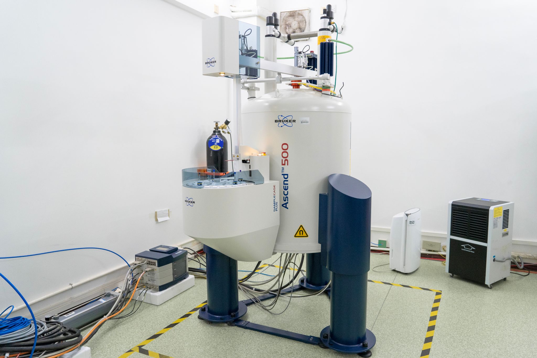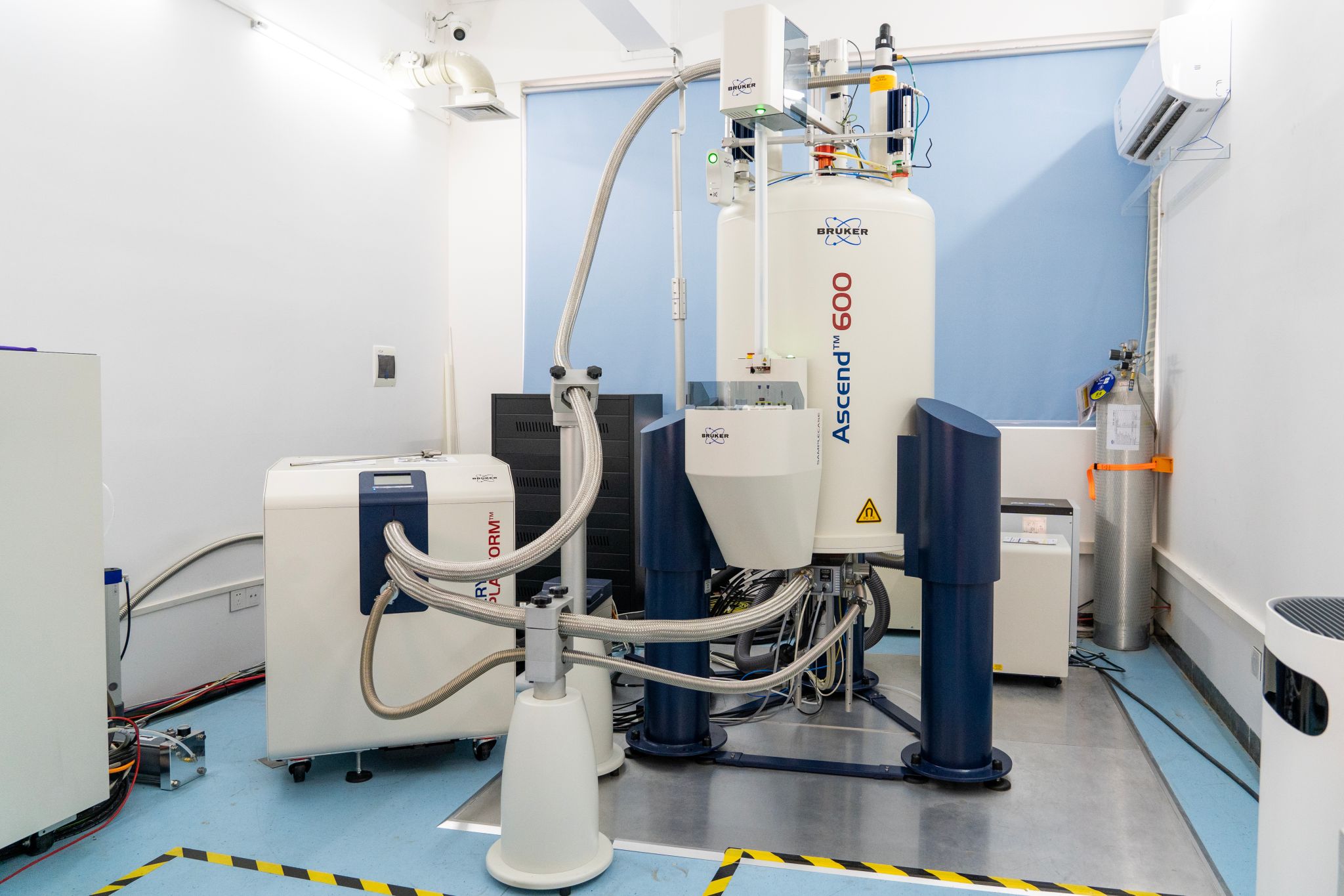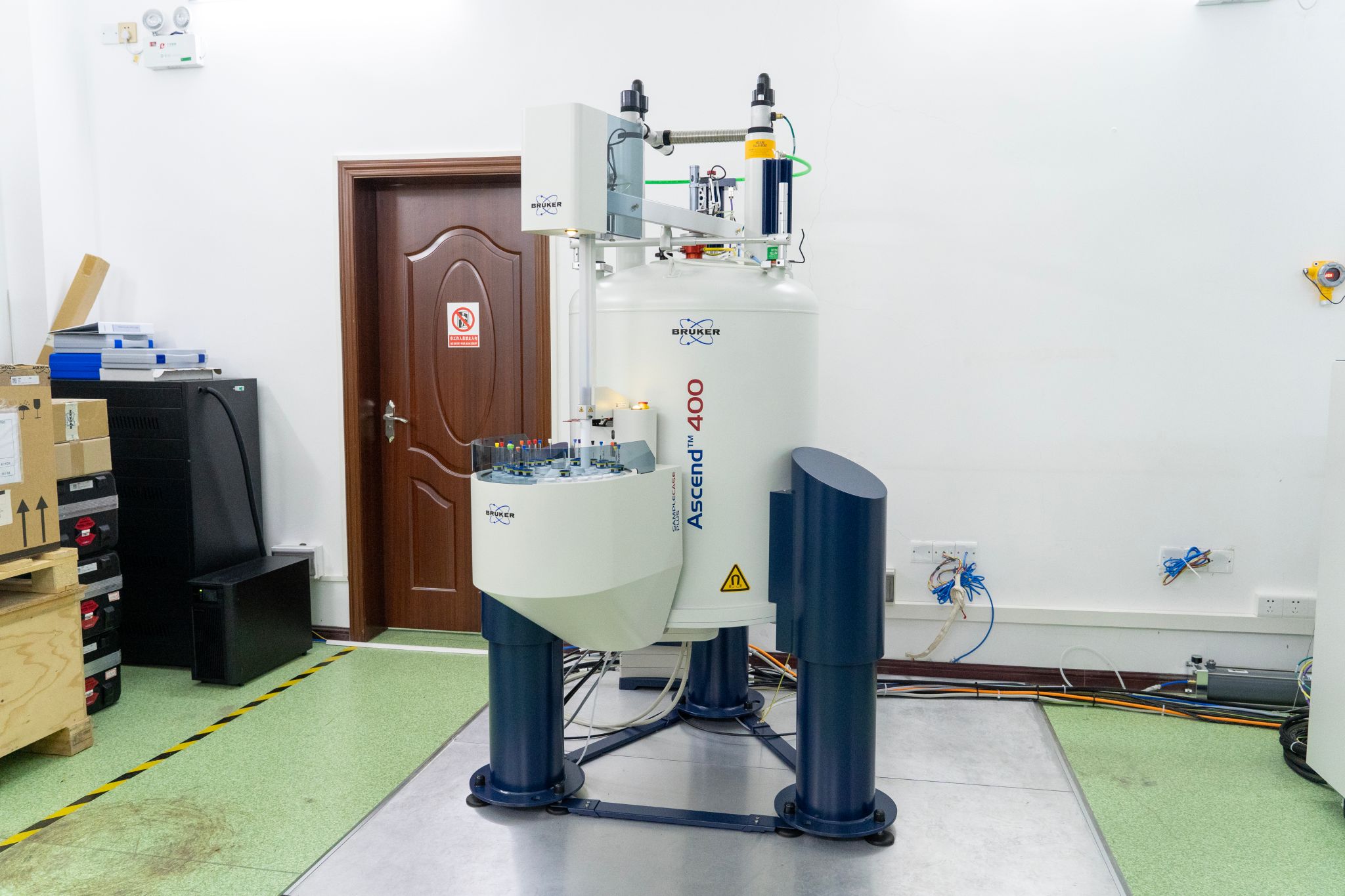 我校目前配備有400、500和600 MHz共3臺核磁共振波譜儀,這些設備在學校的化學、藥學、材料科學等多個領域的研究中發揮著重要作用。特別是600 MHz核磁共振波譜儀,配備了先進的液氦超低溫探頭,能夠對微量生物樣品進行高精度的結構分析,極大地推動了相關學科的研究進展。