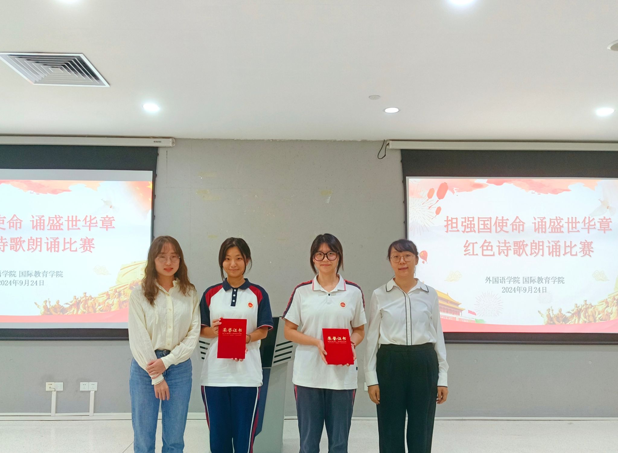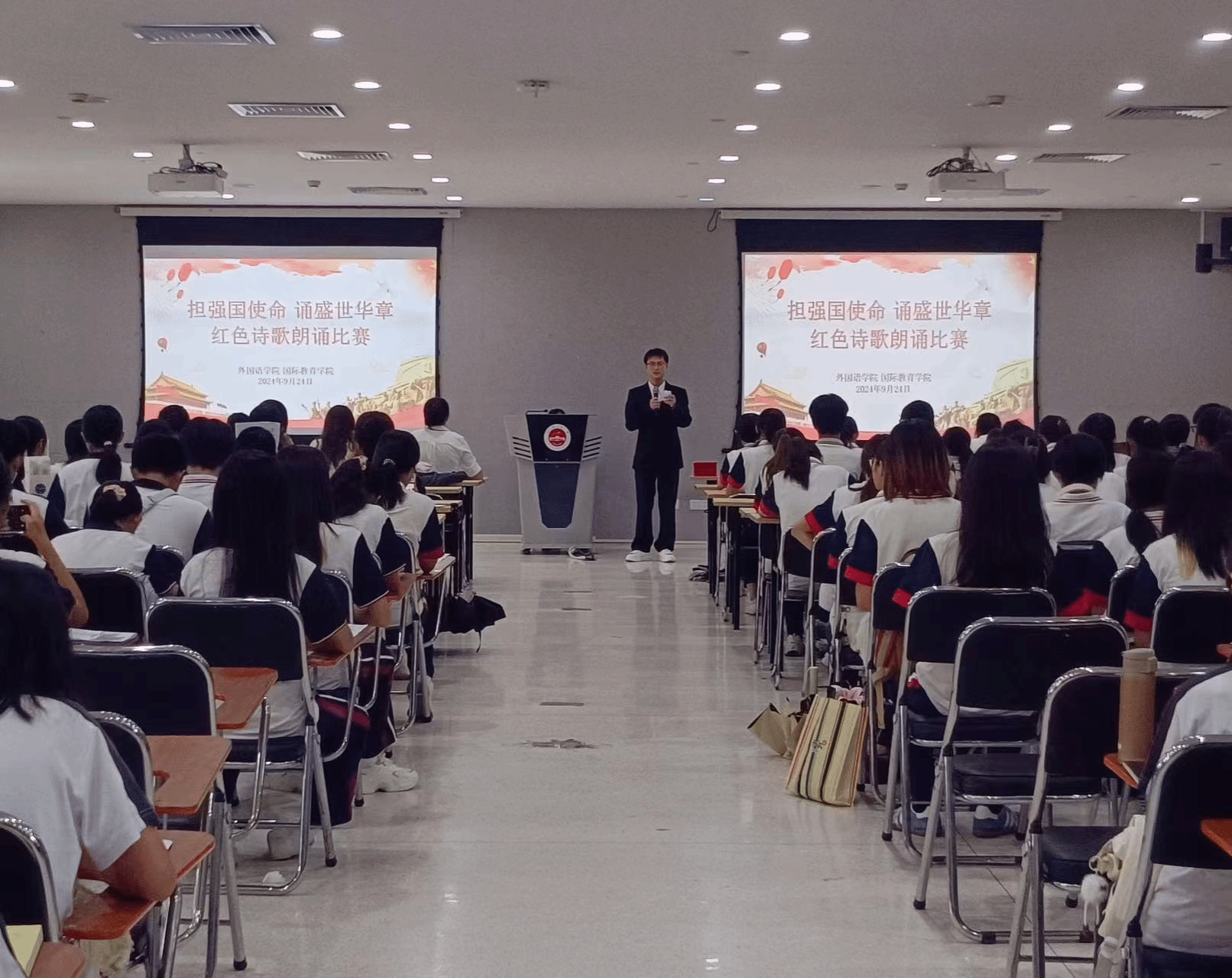 為深入學(xué)習(xí)貫徹黨的二十大和二十屆三中全會精神,熱烈慶祝新中國成立75周年,弘揚愛國主義精神,增強當(dāng)代青年學(xué)生的民族自豪感和歷史使命感,引領(lǐng)廣大團員青年銘記歷史、勇?lián)姑?、奮發(fā)進取,國際教育學(xué)院與外國語學(xué)院于9月24日下午在學(xué)生綜合服務(wù)中心209教室聯(lián)合舉辦了“擔(dān)強國使命 誦盛世華章”主題紅色詩歌朗誦比賽。國際教育學(xué)院和外國語學(xué)院共16個團支部近160人參加了此次比賽。