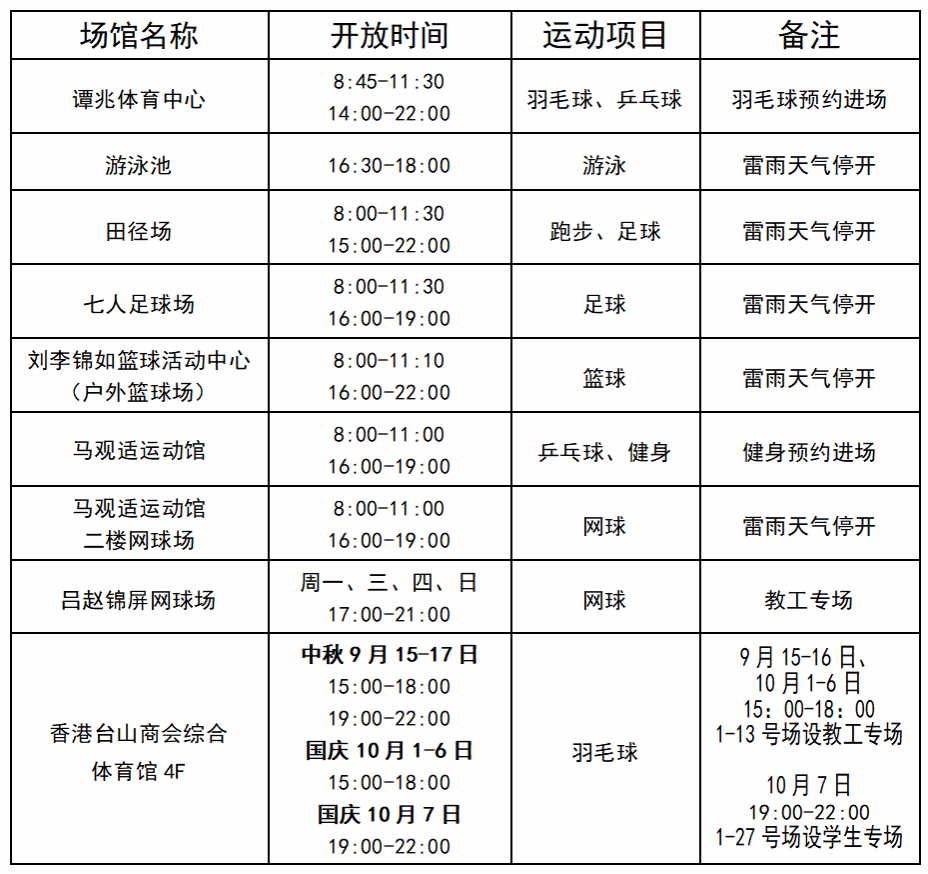 根據學校關于2024年中秋節、國慶節放假的安排,放假期間學校體育場館正常開放,具體安排如下: