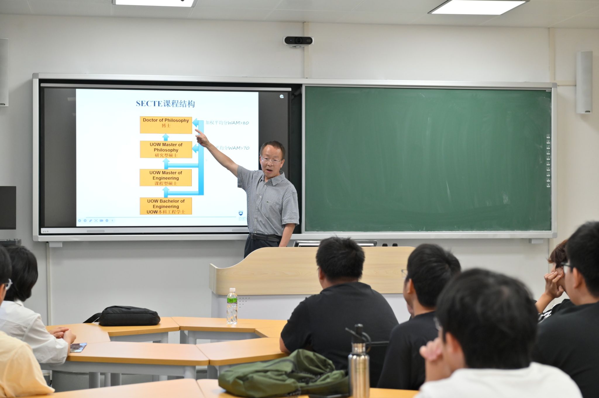 During the meeting, Professor Xi began with the topic of how education can change lives, sharing his own academic and work experiences both domestically and internationally with the students. He encouraged students to focus on their studies during their youth and to develop a persistent quality of learning. Subsequently, he provided a detailed introduction to the Faculty of Engineering and Information Sciences, covering aspects such as the operational design of the program, research directions, course structure, and employment and further education prospects, expressing his anticipation of meeting the students in Wollongong soon. In the Q&A session, students actively asked questions about the overseas study model, teaching facilities, and admission requirements, to which Professor Xi responded one by one, creating a warm and harmonious atmosphere. The presentation allowed students to gain a deeper understanding of the significance and value of the Sino-foreign joint training program, helping to establish their confidence in studying abroad, and stimulating their enthusiasm and motivation for learning.