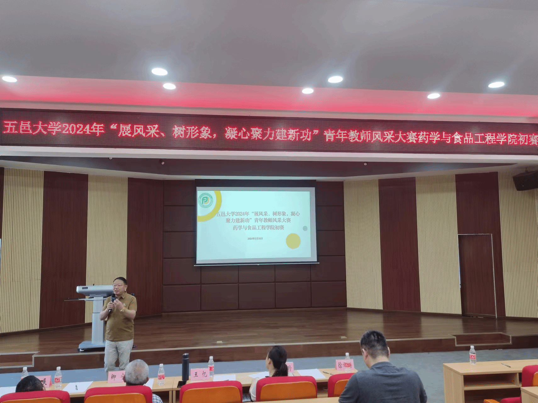 為進一步激發青年教師的教學熱情,提升教書育人能力素質,更好展現新時代學院青年教師的風采,5月16日,五邑大學“展風采、樹形象,凝心聚力建新功”青年教師風采大賽藥學與食品工程學院初賽在馬蘭芳樓307如期舉行,我院7名青年教師參加了比賽,大賽邀請了應用物理與材料學院退休教師王憶教授、環境與化學工程學院退休教師卿寧教授、藥學與食品工程學院班子成員、系主任擔任評委。學院沒課的青年教師觀摩了比賽,比賽由學院黨委書記謝輝玲主持。