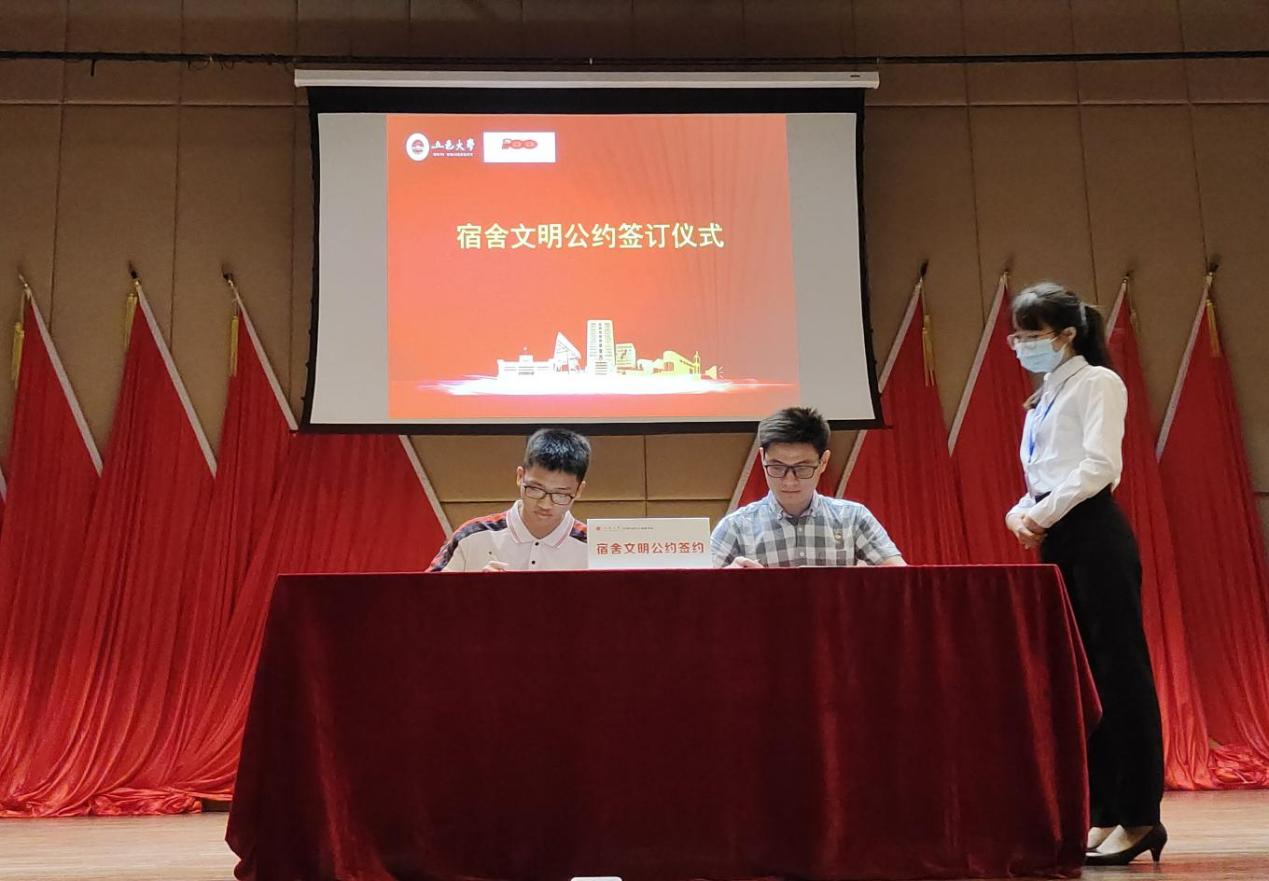 會上,鄒武龍從活動背景,實施過程,目標(biāo)效果等三方面解讀了“創(chuàng)先鋒宿舍”實施方案。優(yōu)秀宿舍代表23-108,27-608分別從宿舍成員、宿舍風(fēng)貌、宿舍學(xué)風(fēng)、宿舍學(xué)風(fēng)等方面進行了宿舍經(jīng)驗分享和交流。隨后,鄒武龍老師代表學(xué)院與各年級宿舍長代表簽訂宿舍文明公約。侯桂根希望同學(xué)們將宿舍當(dāng)成自己的家,以“創(chuàng)先鋒宿舍”為契機,維護宿舍安全,養(yǎng)成良好的生活作息,共同營造良好的宿舍文化環(huán)境。許皓指出學(xué)院以“創(chuàng)先鋒宿舍”為切入點,探索、創(chuàng)新宿舍管理模式,努力為學(xué)生建設(shè)一個文明、和諧的宿舍環(huán)境,希望同學(xué)們以黨史學(xué)習(xí)教育為契機,學(xué)史崇德,學(xué)史力行,奮發(fā)有為,爭創(chuàng)先鋒,以優(yōu)異成績向建黨100周年獻禮。