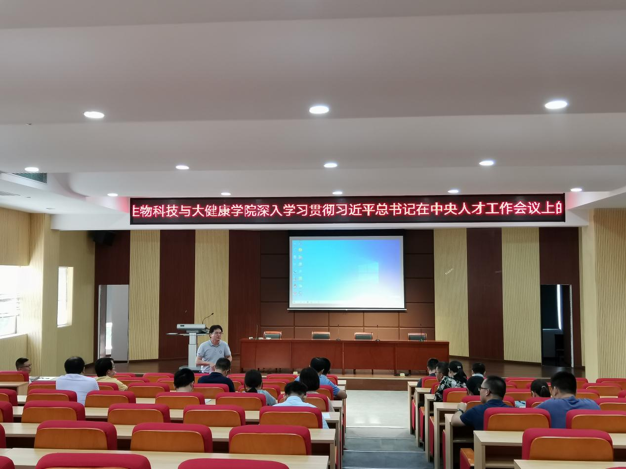 2021年10月11日下午,生物科技與大健康學(xué)院在馬蘭芳樓307報告廳召開深入學(xué)習(xí)貫徹習(xí)近平總書記在中央人才工作會議上重要講話精神座談會,就如何培養(yǎng)人才、使用人才、提高學(xué)院的凝聚力、學(xué)院班子如何更好服務(wù)師生發(fā)展進行深入研討。學(xué)院各科研團隊負責(zé)人、2019年以來入職的教師共30逾人參加會議。會議由學(xué)院黨委書記許皓主持。