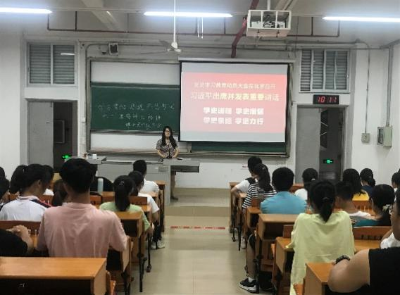 趙娟博士帶領同學們回顧了中國共產黨從一大到十九大的百年奮斗歷程和輝煌成就,詳細介紹了抗戰時期的國立西南聯合大學和就讀學子立志報國的感人故事,通過圖片和視頻的形式追尋聯大學子足跡,展示他們“報國不忘讀書,讀書不忘報國”的經歷,使同學們深刻感受到聯大學子身上深厚的愛國情懷和剛毅堅卓的奮斗精神。