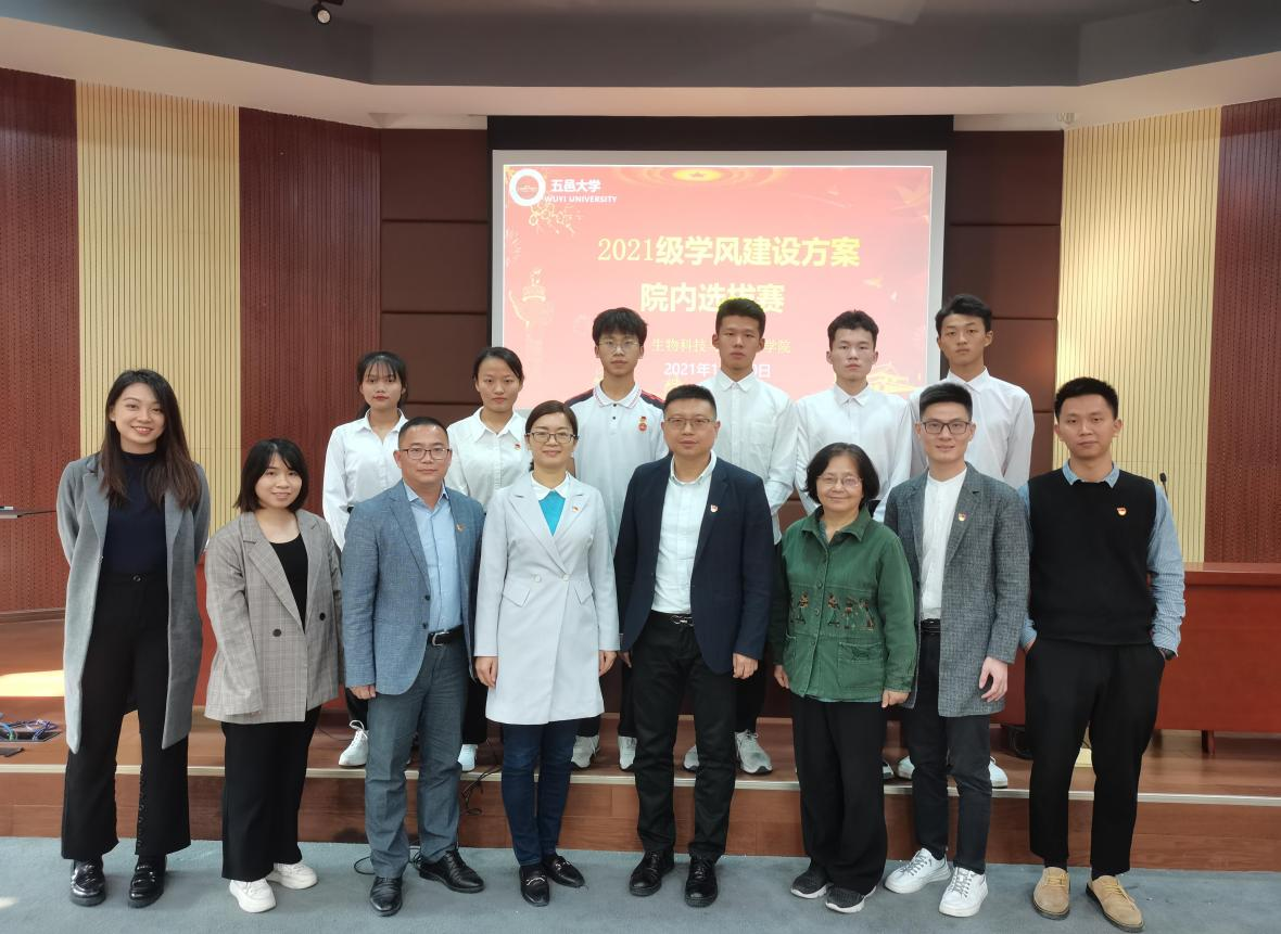 為進一步幫助新生更好地適應大學的學習生活,營造良好學習風氣,11月30日,生物科技與大健康學院在馬蘭芳樓307舉行“2021級學風建設方案院內選拔賽”。學生處處長李華、學院黨委書記許皓、副書記黃應忠,班導師賀拂、馮雁賢、湯柳燕、輔導員鄒武龍、黃作宏、新生學長代表以及2021級本科新生代表參加了本次選拔賽。