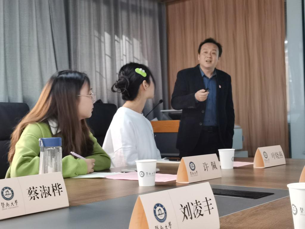 暨南大學生命科學技術學院黨委副書記朱政輝、輔導員李榕、馮詩曉、王在易、梁智權及學生干部代表熱情接待我院到訪師生,雙方就學生工作的重點、難點和痛點展開熱切交流。朱政輝提到,暨南大學學生管理工作具有三個方面的特色:一是體制健全,實施學生分層、管理分類、重點推進的工作體制;二是制度規(guī)范,建立規(guī)范完善的學生干部自我教育、自我管理的激勵和約束機制,以研究生會和學生會為重要抓手增強學生集體的向心力和凝聚力。三是培育載體。依托第二課堂積極探索學生工作項目化管理模式,引導學生社團從自發(fā)到自覺地開展活動。