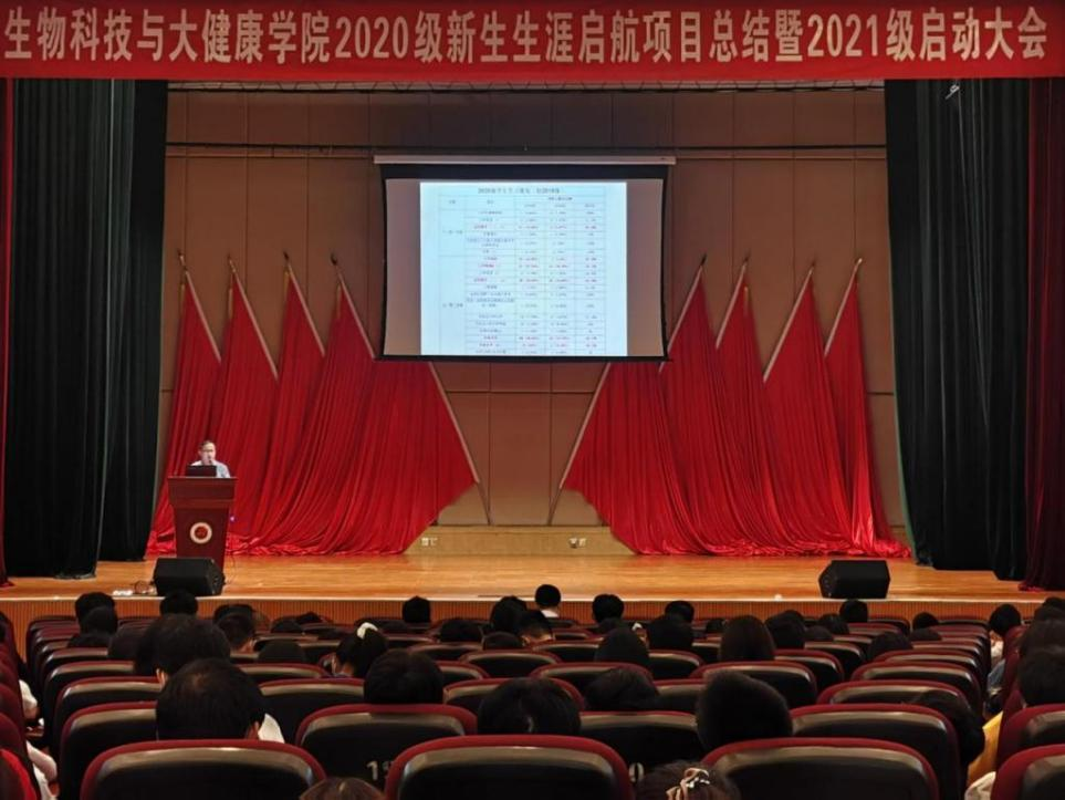 10月26日,生物科技與大健康學(xué)院在呂志和大禮堂召開“2021級新生生涯啟航項(xiàng)目”啟動(dòng)大會(huì),該項(xiàng)目主要通過班級建設(shè)、組建學(xué)習(xí)小組、擬定目標(biāo)及計(jì)劃開展必選與自選學(xué)習(xí)活動(dòng)。6個(gè)班級已全部制定《班委分工》《班規(guī)》《舍規(guī)》《學(xué)風(fēng)建設(shè)方案》《班級獎(jiǎng)懲制度》并有效實(shí)施。每個(gè)班級組建4-5個(gè)學(xué)習(xí)小組,并經(jīng)輔導(dǎo)員、班導(dǎo)師指導(dǎo)制定學(xué)習(xí)目標(biāo)和行動(dòng)計(jì)劃,每位成員同步擬定個(gè)人目標(biāo)及計(jì)劃。每個(gè)小組由一名學(xué)長指導(dǎo)和帶領(lǐng),平均每周開展1次學(xué)習(xí)活動(dòng),例如:小組研討、小組分享、小組參加科技競賽等。每周2-3次晚自修,并實(shí)行考勤,將考勤情況反饋給班導(dǎo)師和輔導(dǎo)員,目前各小組基本上都是全勤。
