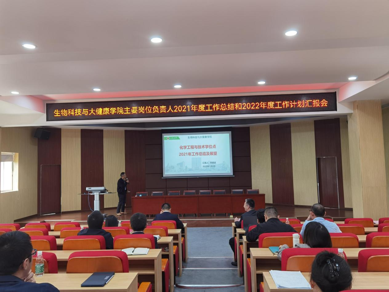 為進一步促進學院發展,加強經驗總結,提煉工作亮點,提高工作質效,2022年1月8日,生物科技與大健康學院舉行主要崗位負責人2021年度述職報告會。會議由學院副院長徐學濤主持,學院黨政領導班子、各教學系主任、專業負責人、教學實驗中心主任、實驗研究中心主任、學位點負責人、科研團隊負責人、教工黨支部書記參加會議。