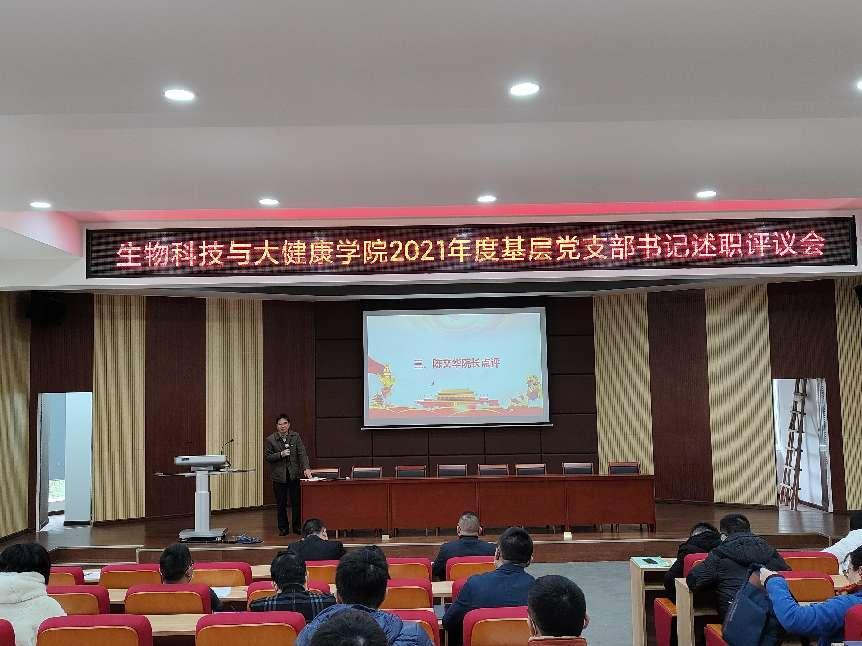 根據學校黨委組織部《關于開展2021年度基層黨支部書記述職評議考核工作的通知》要求,2月24日上午,生物科技與大健康學院黨委在馬蘭芳樓307舉行2021年度基層黨支部書記述職評議會。學院黨總支書記、副書記、委員,各黨支部書記、支委,教師黨員代表和群眾代表參加了會議。會議由黨委書記許皓主持。