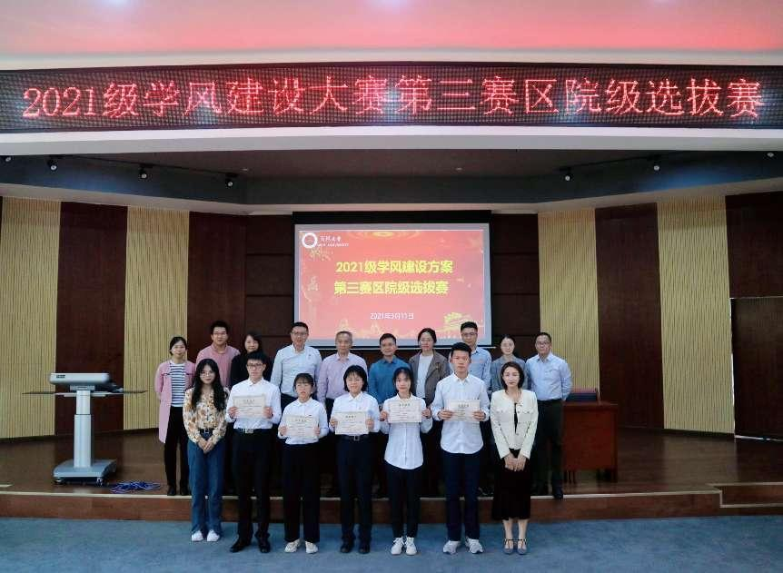 第三賽區土木建筑學院、數學與計算科學學院、生物科技與大健康學院于2021年12月自行舉辦班級學風建設大賽,通過選擇優秀班級再進行賽區比賽,優中選優。本次選拔賽呈現如下三個特點:一是各班級基本完善班級管理制度;二是各班級結合實際開展行之有效的學風建設活動,成效顯著;三是各班級緊扣黨史學習教育主題,圍繞學風建設方案組織實施,具有較強的針對性及操作性。(文/圖 生物科技與大健康學院)