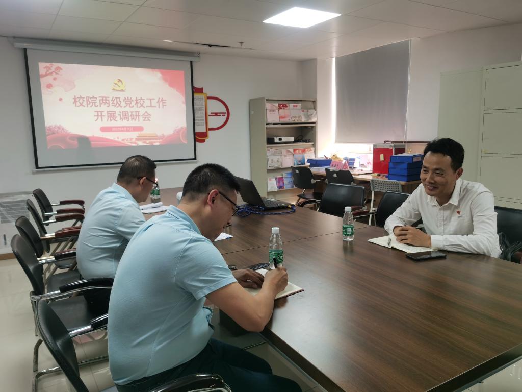 根據上級指示,潘立偉就建設校院兩級黨校工作進行調研,聽取我院兩位書記對黨校建設的意見和建議。許皓書記介紹了我院第一季度黨建調研的情況,建議黨校建立健全干部培訓機制,完善學院重點崗位干部、輔導員隊伍等人才培養、培訓的體系建設,確定好培養對象、培訓內容,統籌、協調好各方面工作,增強學校人才儲備的后備力量。黃應忠書記則從學生工作出發,建議黨校加強校院兩級機制的結合,做好頂層設計,針對不同群體突出培訓重點,特別是在學生黨員的發展過程中,加強黨務基礎知識的普及,更好發揮黨建立德樹人的作用。