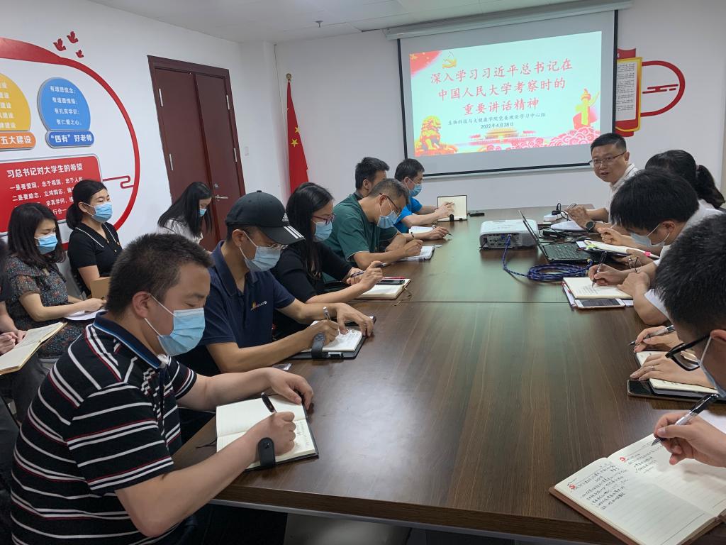 4月28日,生物科技與大健康學院黨委理論學習中心組進行集體學習,深入學習習近平總書記在中國人民大學考察時的重要講話精神。學院黨委理論學習中心組成員、黨支部書記、輔導員和教師代表參加學習。學習會由學院黨委書記許皓主持。