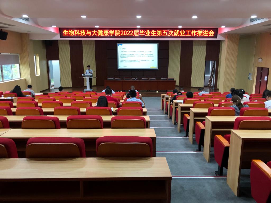 為進一步推進2022屆畢業生就業工作,5月10日,生物科技與大健康學院在馬蘭芳報告廳召開2022屆畢業生第五次就業推進會。學院班子成員、黨支部書記、系主任、學位點負責人、畢業班班導師、輔導員參加會議,會議由黃應忠主持。