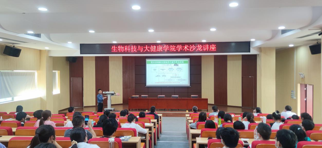 10月11日下午,生物科技與大健康學院在馬蘭芳樓307報告廳舉辦了第六期學術沙龍,此次講座由彭金寶教授主持。農產品加工與品質調控團隊劉磊研究員和功能有機分子創制與應用團隊李濱教授分別以《全谷物酚類物質調節糖脂代謝作用及其健康食品研發》《過渡金屬催化硅氫加成反應和碳-硅鍵偶聯反應》為主題作專題報告。全院師生近140人參加了講座。