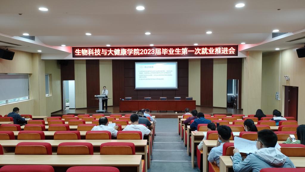 10月19日,生物科技與大健康學院在馬蘭芳307召開了2023屆畢業生第一次就業推進會,學院班子成員、黨支部書記、系主任、畢業班班導師、輔導員參加了會議。會議由黨委副書記(主持工作)王婷主持。