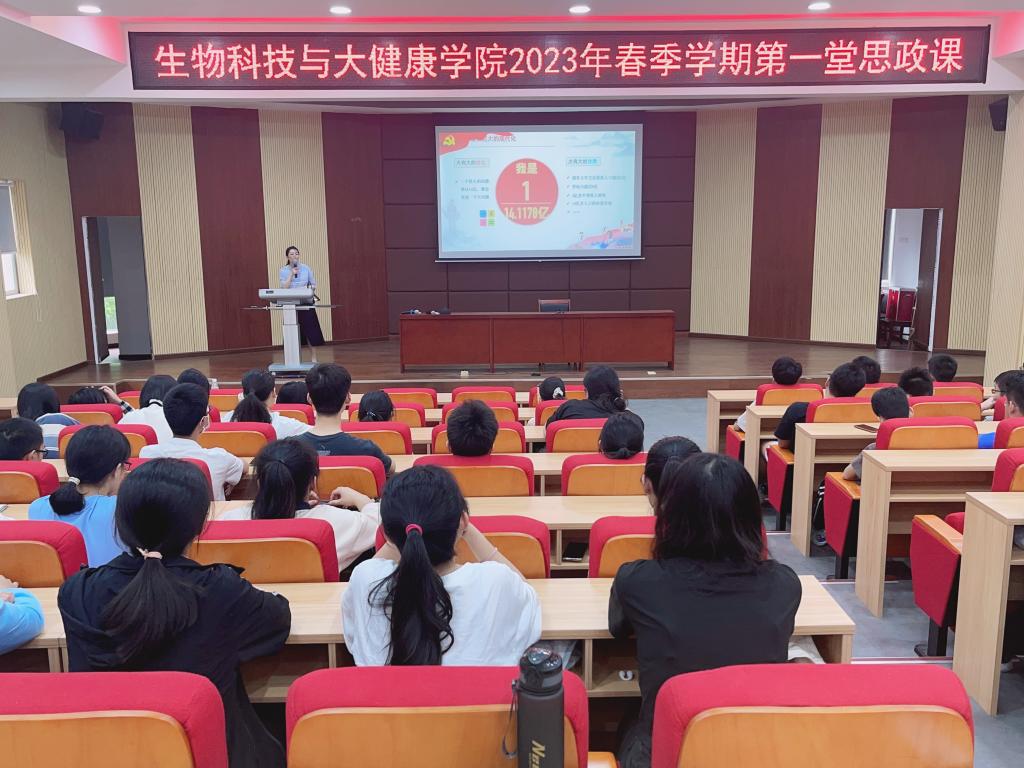 為深入貫徹學習習近平新時代中國特色社會主義思想和黨的二十大精神,根據學校《關于做好2023年春季學期學院(部)黨組織書記、院(部)長上第一堂思政課工作的通知》要求,生物科技與大健康學院黨委副書記王婷、院長陳文華于3月19日、3月20日分別為學院部分共青團干、積極分子、2022級本科新生以及全體研究生入黨積極分子、發展對象講授春季學期第一堂思政課。