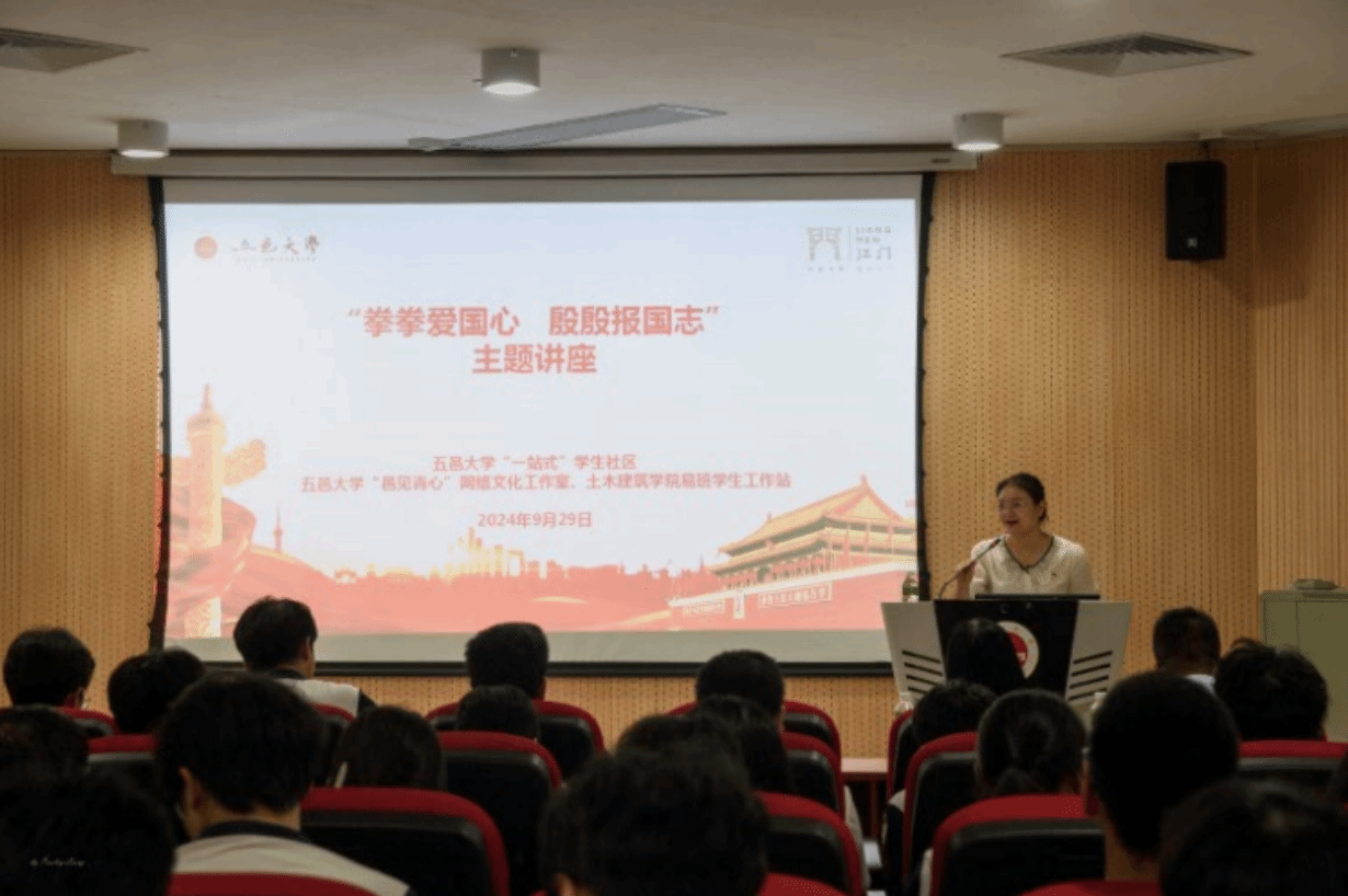 七十五載長(zhǎng)歌奮進(jìn),邑大學(xué)子傳承精神。2024年9月29日下午,由黨委學(xué)生工作部主辦、 “邑見(jiàn)青心”網(wǎng)絡(luò)文化工作室和土木建筑學(xué)院易班學(xué)生工作站承辦的“拳拳愛(ài)國(guó)心 殷殷報(bào)國(guó)志”愛(ài)國(guó)主義教育專題講座在學(xué)生社區(qū)開(kāi)展。五邑大學(xué)廣東僑鄉(xiāng)文化研究院譚金花教授主講講座,130余名師生代表參加。