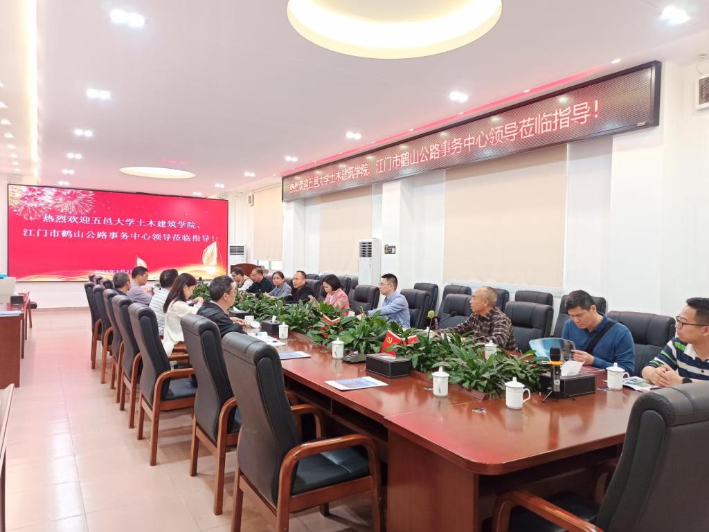 施璟亮主任回顧了雙方前期簽署的產學研合作協議。根據協議,在江門市鶴山公路事務中心已掛牌成立“五邑大學土木建筑學院實踐教學基地”、“五邑大學土木建筑學院課程思政實踐教學基地”和“五邑大學土木建筑學院研究生教育實踐基地”。施璟亮主任提出了借助土木建筑學院師資力量協助培訓技術工人、共享共建材料實驗室、共同開展科研合作等需求。