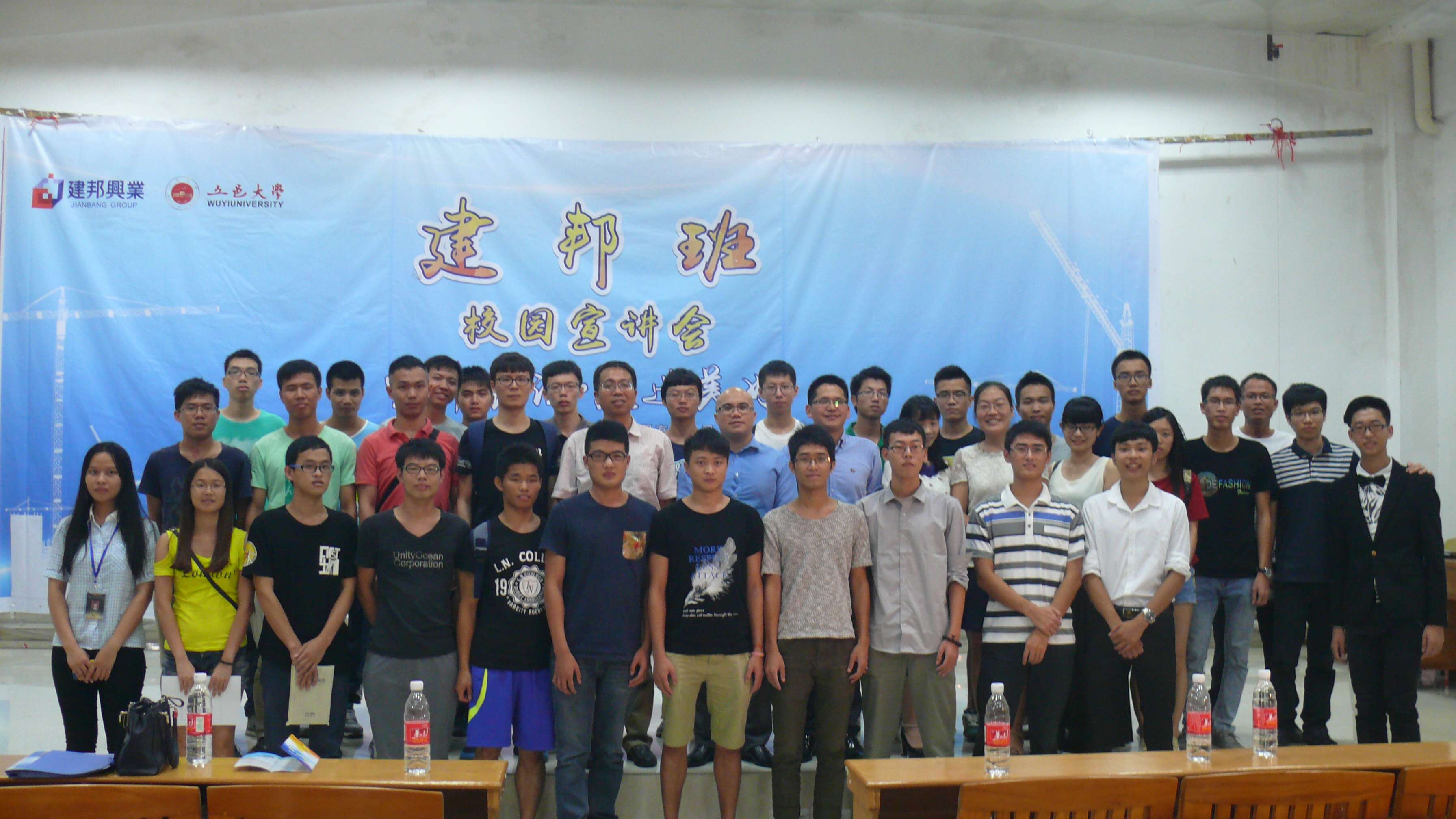 2015年9月22日下午4時(shí),土木建筑學(xué)院與產(chǎn)學(xué)合作單位——廣東建邦興業(yè)集團(tuán)有限公司共同舉辦的建邦班校園宣講會(huì),在學(xué)生活動(dòng)中心二樓報(bào)告廳舉行。出席的人員有廣東建邦興業(yè)集團(tuán)有限公司吳庭佳總經(jīng)理、劉重新總工程師、人事部莊敏華經(jīng)理、土木建筑學(xué)院周利院長(zhǎng)、李本強(qiáng)副教授、輔導(dǎo)員高麗麗老師,以及學(xué)院大三大四年級(jí)的70余名學(xué)生代表,此外部分大二年級(jí)學(xué)生對(duì)建邦班興趣濃厚,前來(lái)聆聽(tīng)宣講會(huì)。