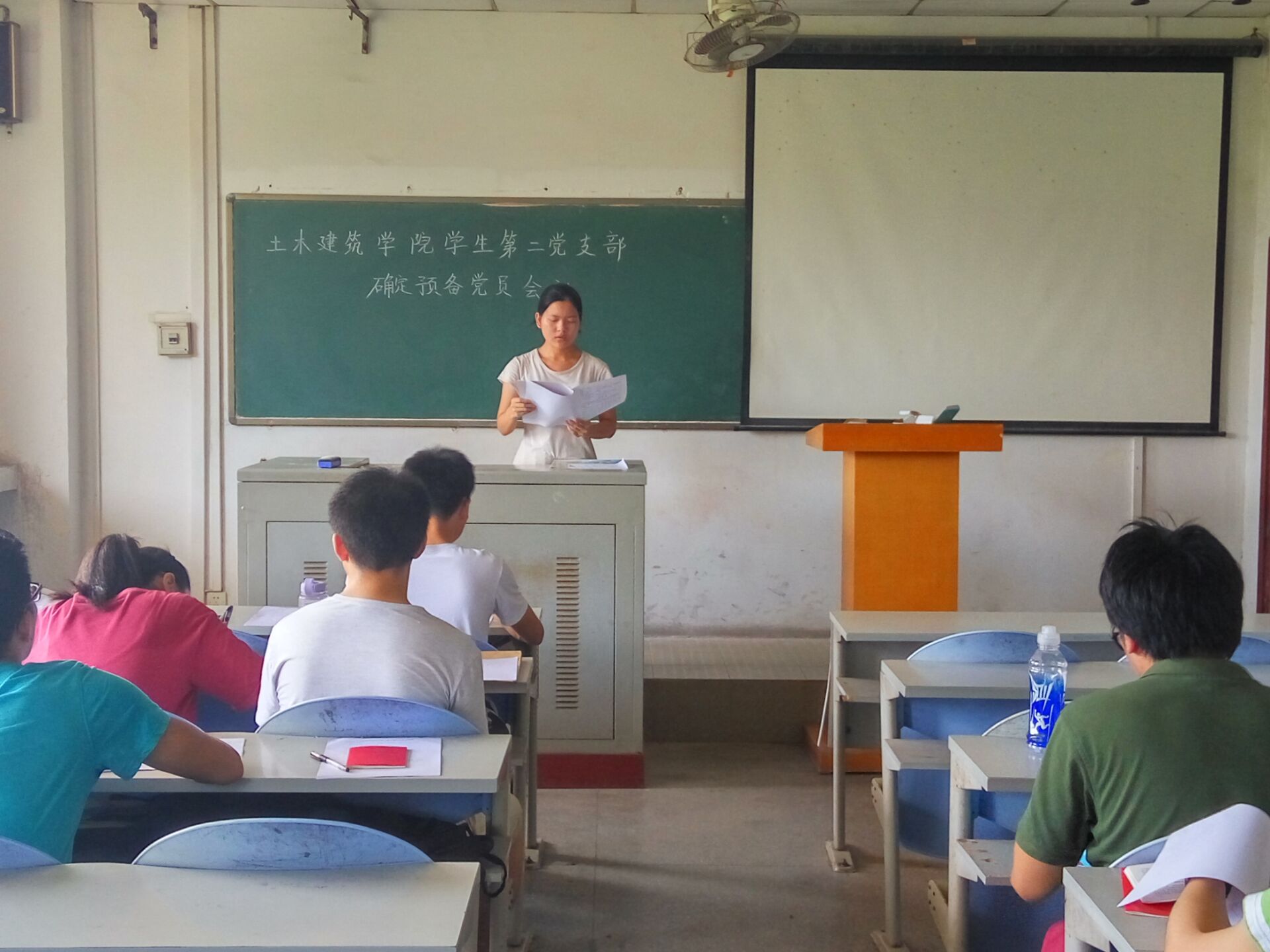 本次大會同意接收朱絲絲、吳曉航兩位發展對象為中共預備黨員。(土木建筑學院學生第二黨支部)
