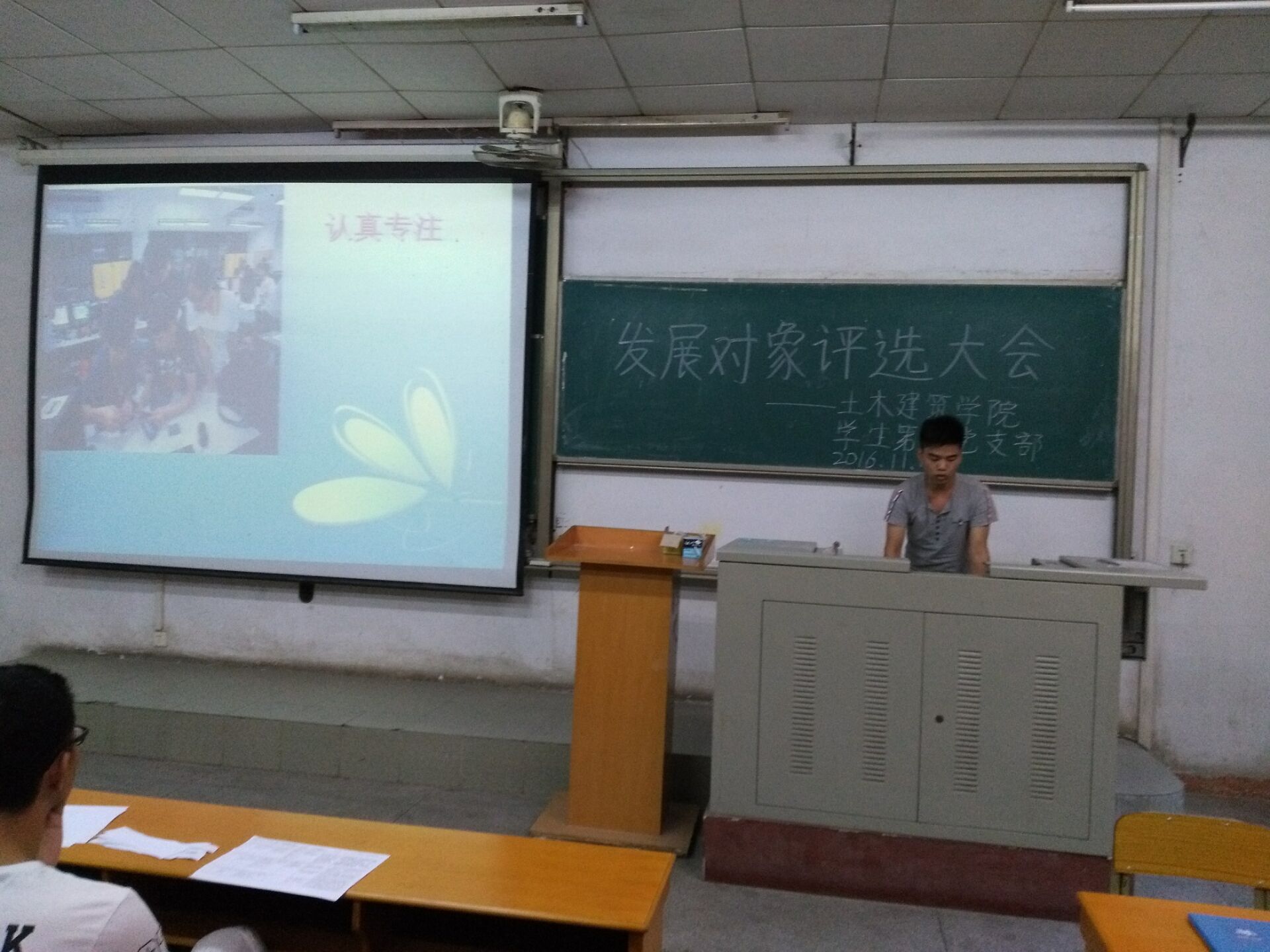 2016年11月17日,土木建筑學院學生第一黨支部于南主樓249召開支部大會,對三名經過一年以上培養教育和考察、滿足成為考察對象條件的入黨積極分子進行考察討論,在聽取黨小組、培養聯系人、黨員和群眾意見的基礎上,綜合三名積極分子匯報情況,支部投票同意了其中兩名成為發展對象。出席本次會議的有支部書記陳孔亮老師以及支部八名學生黨員,會議由馬文杰同志主持。