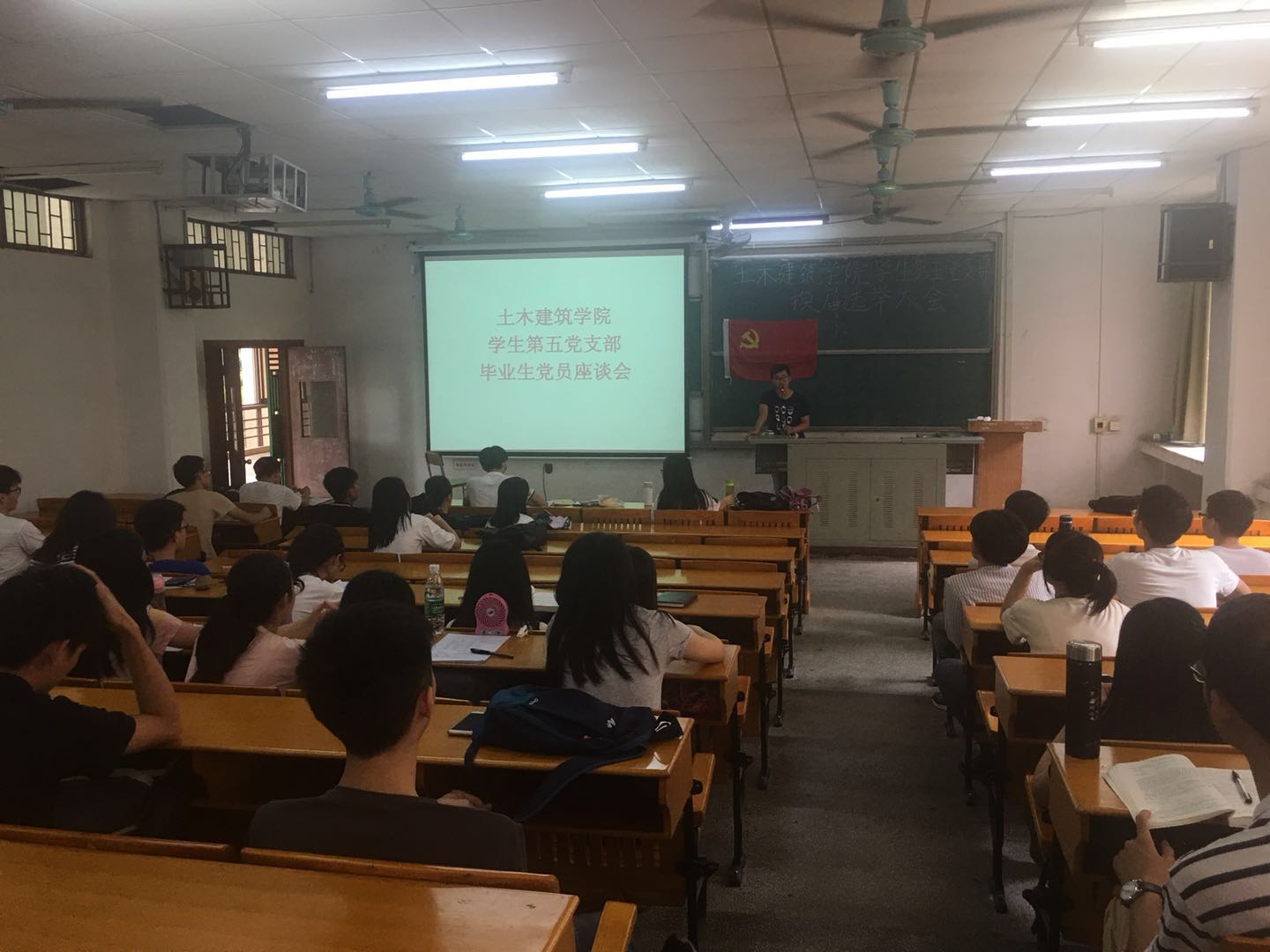 2018年6月27號,土木建筑學院學生第五黨支部于南主樓201召開了畢業生黨員座談會,會議由周婷婷同志主持。參加本次會議的有支部學生黨員。