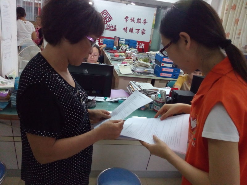 盡管天氣不佳,但沒有消褪東成社區居民們的熱情。居民來到我們的咨詢點,咨詢有關該貧困助學政策所面向的的對象和資助形式等問題,志愿者們耐心為他們解答。陣雨稍停的時候,我們的志愿者們抓緊時間在社區巷道發派傳單,為他們宣傳講解貧困助學的詳細內容。