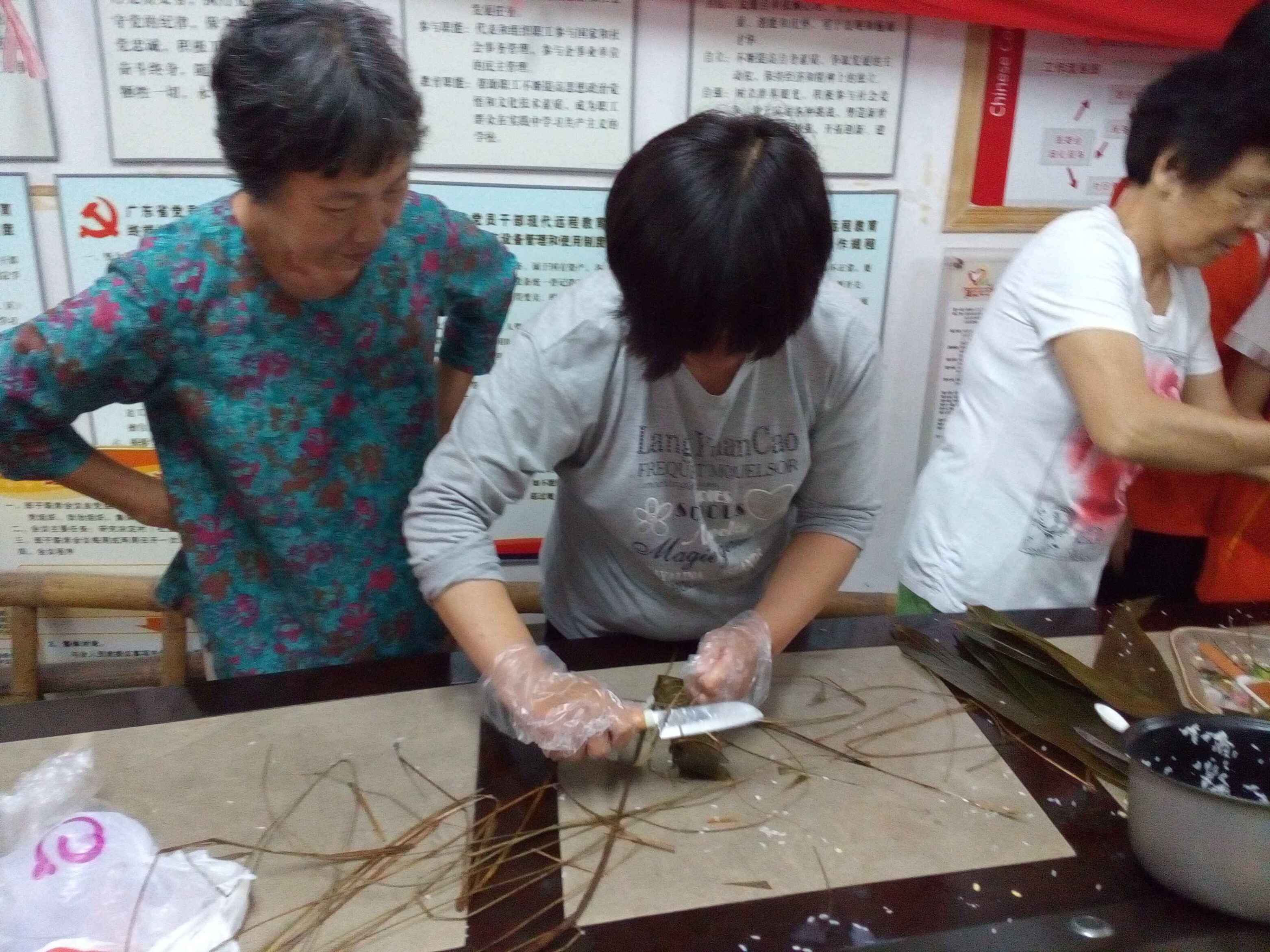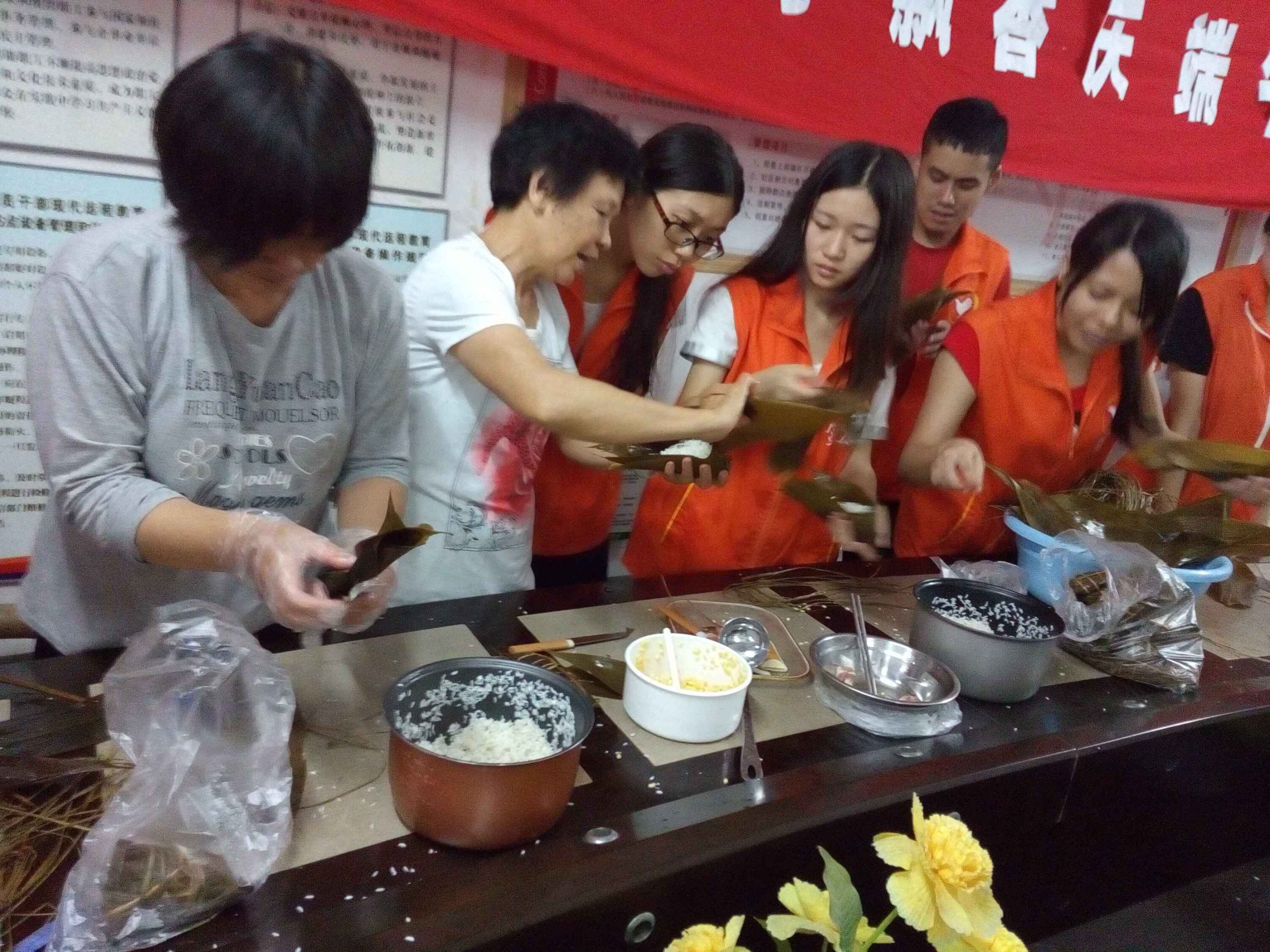 6月7號14點30分,由五邑大學(xué)土建青年志愿者組織的“常回家看看東成社區(qū)端午聚”活動在東成社區(qū)居委會舉行。盡管小雨淅瀝,社區(qū)老人們熱情不退,還是陸陸續(xù)續(xù)地到來。主持人致辭完畢,老人和志愿者便開始包粽子,來回舀動的勺子,剪刀一送,桌上已經(jīng)是好幾條粽子了。志愿者們跟著一旁,修剪粽子繩,舀米,側(cè)耳傾聽老人的故事,半小時后桌上已堆起粽子山。接著主持人開始進行端午知識問答環(huán)節(jié),面對傳統(tǒng)習(xí)俗和粽子制作知識老人回答起來一點也不含糊,豬肉的腌制,糯米的選取,粽子的包法,回答的很詳細;不過問起端午歷史知識卻是志愿者們稍勝一籌。最后活動結(jié)束的時候,老人們和志愿者們合影留念,他們表示希望這種活動能繼續(xù)舉辦下去,而且越辦越好。