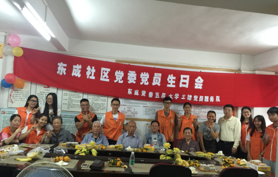 2016年11月18日,由五邑大學(xué)土木建筑學(xué)院青年志愿者協(xié)會與東成社區(qū)活動中心共同舉辦的“常回家看看之生日聚會”于當(dāng)天下午在東成社區(qū)正式開展。這次活動弘揚了“傳播愛心,關(guān)心社會;自我奉獻,貢獻社會”的五邑精神,向老人家提供溫暖和傳播愛心,與此同時,也提高了大學(xué)生要多點關(guān)注社會中容易被忽視的群體。參與活動的有東成社區(qū)的老黨員們、土木建筑學(xué)院吳卓強書記、輔導(dǎo)員王穎馨老師以及志愿者們。