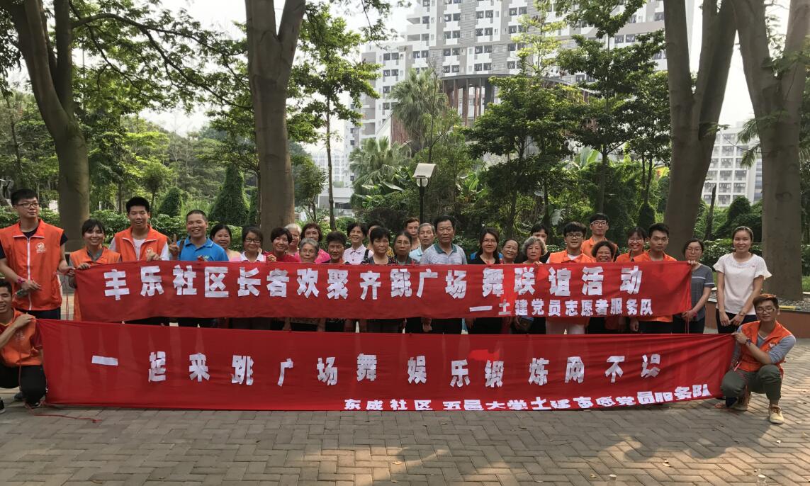 “小伙子,我好喜歡你們這個舞蹈啊!”一位婆婆笑著說到。為豐富社區老人的生活,引導老人增強體育健身意識,營造全民健身的社會新風氣,4月18日,五邑大學土木建筑學院黨員志愿者服務隊在輔導員楊燕麗老師的帶領下,再次攜手豐樂社區、東成社區開展常“回家”看看——一起來跳廣場舞活動,拉開了2017年常“回家”看看系列活動的序幕。