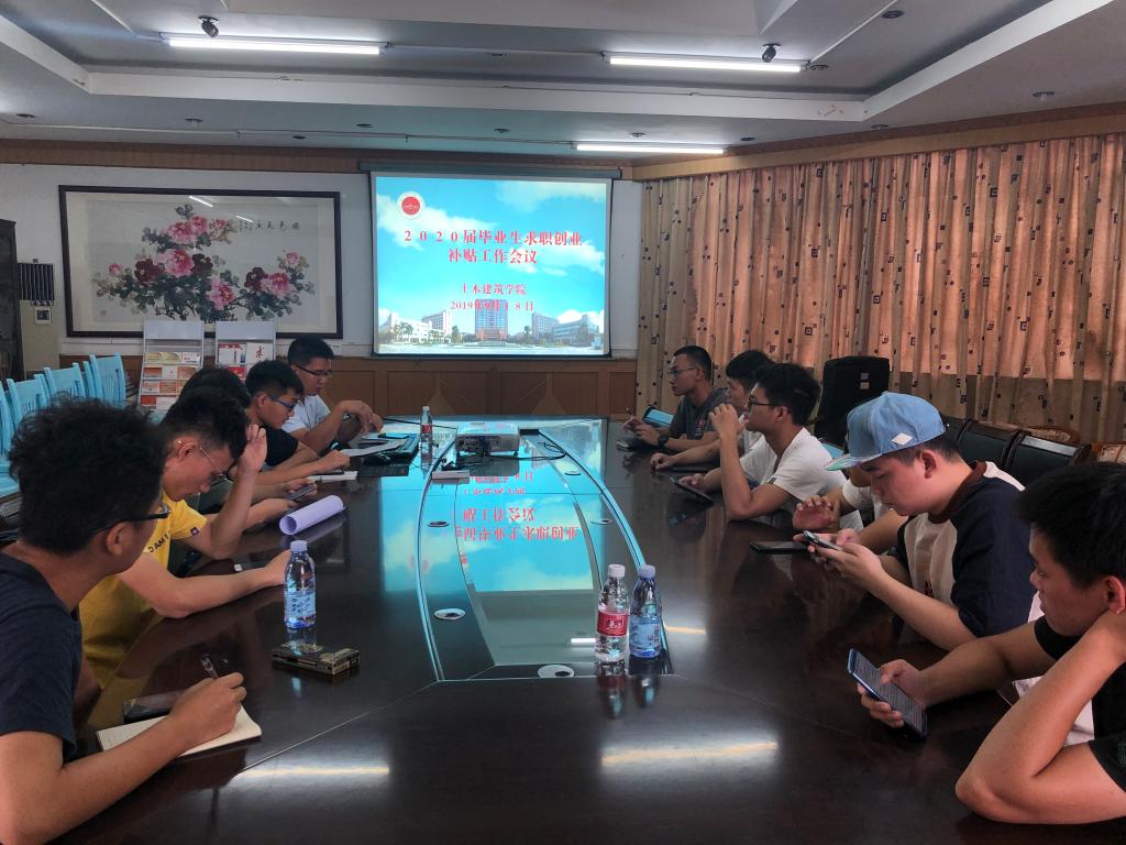 9月19日中午,土木建筑學院在偉倫建筑館308會議室召開了關于2020屆高校畢業生求職創業補貼工作會議,參加本次會議的有輔導員胡偉堅,學院學生創新創業與就業發展協會(創協)主席李華庫、副主席梁智毅和全體畢業班班長。本次會議由輔導員胡偉堅老師主持。