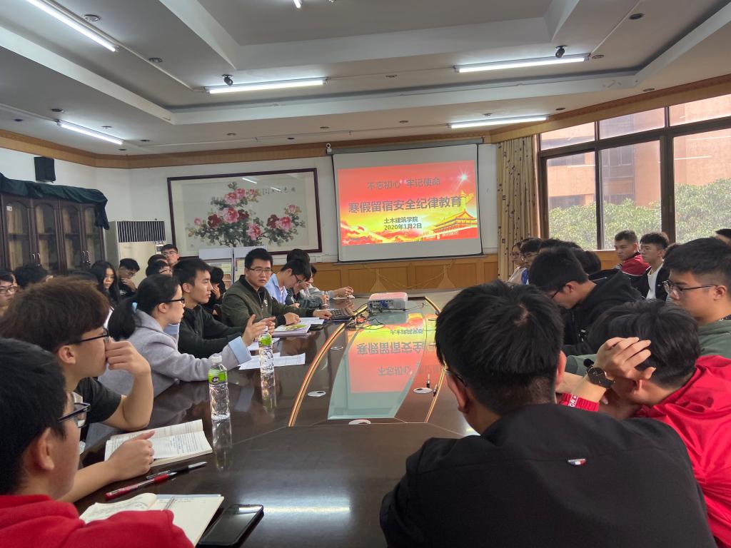 為了保障寒假期間留校住宿學生人身及財產安全,2020年1月2日中午,土木建筑學院于偉倫建筑館308會議室召開2020年寒假留宿安全紀律教育。學院全體輔導員出席,學院全體班級副班長、生活委員,以及全體學生自律委員會干部參加了主題教育。會議由學院輔導員胡偉堅老師主持。