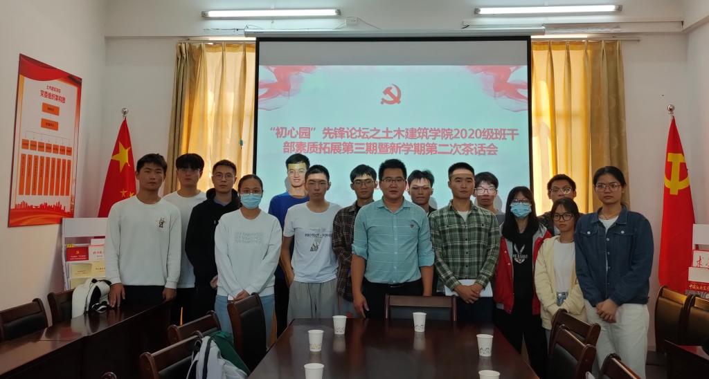 為進一步學習貫徹習近平總書記“七一”重要講話精神,學習習近平法治思想,提升學生干部的團隊協作能力和凝聚力,培養責任擔當精神,改善團隊管理方法,覆蓋班干部分組分場開展素質拓展活動暨每月茶話會和每周茶話時間常態化推行。提高同學們承擔青年一代的責任與使命,土木建筑學院學生第五黨支部組織策劃于2021年10月26日,在偉倫建筑館404(黨員活動室)為2020級班委代表開展主題為“明理增信 崇德力行 守正創新”的初心園“先鋒論壇”2020級班干部素質拓展第三期暨新學期第二次茶話會。土木建筑學院黨委委員、學生第五黨支部書記、輔導員胡偉堅主持會議。