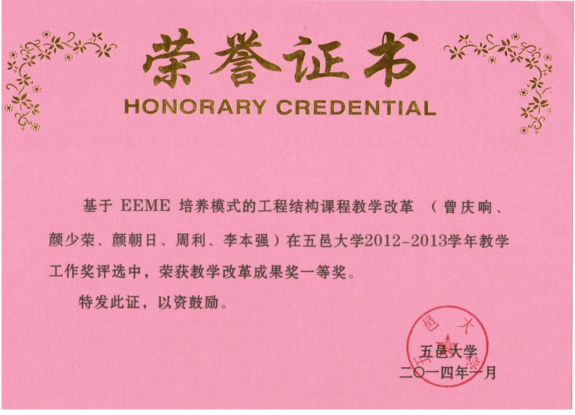 榮獲五邑大學2012-2013學年教學改革成果獎一等獎